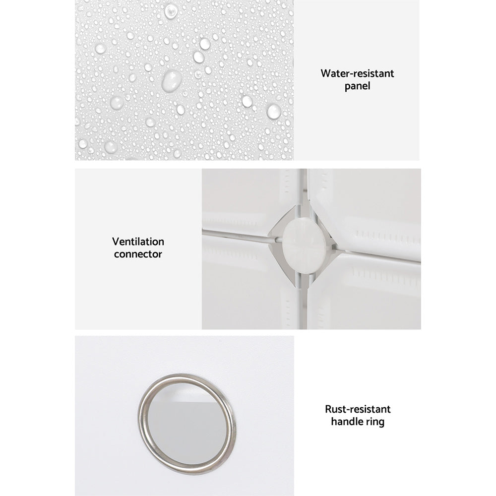 As your shoe collection grows, so should your shoe storage. An Artiss Shoe Cabinet is exactly what you need to keep loose shoes tidy and organised. Made from eco-friendly PP plastic and a strong steel frame, this multipurpose storage cabinet has a 2.5kg weight capacity per shelf, making it ideal for shoes as well as bags, coats or other items to help start your day. The micro-slit design between panels allows for easy ventilation, preventing bacteria growth, mould growth, and odours. Each panel is water-resistant with a rust-resistant handle ring for each door, making it easy to clean and maintain. Your purchase comes with accessories for two unique cabinet configurations, and shelves can be easily added or removed to store differently-sized shoes. You can even expand your shoe cabinet to fit your current storage requirements: simply visit our store and purchase additional units to multiply and expand. With so many options at your disposal, it's easy to see why the Artiss Shoe Cabinet is the right choice for your entryway, bedroom, or walk-in wardrobe.Please note: This item comes with a 1-year warranty.