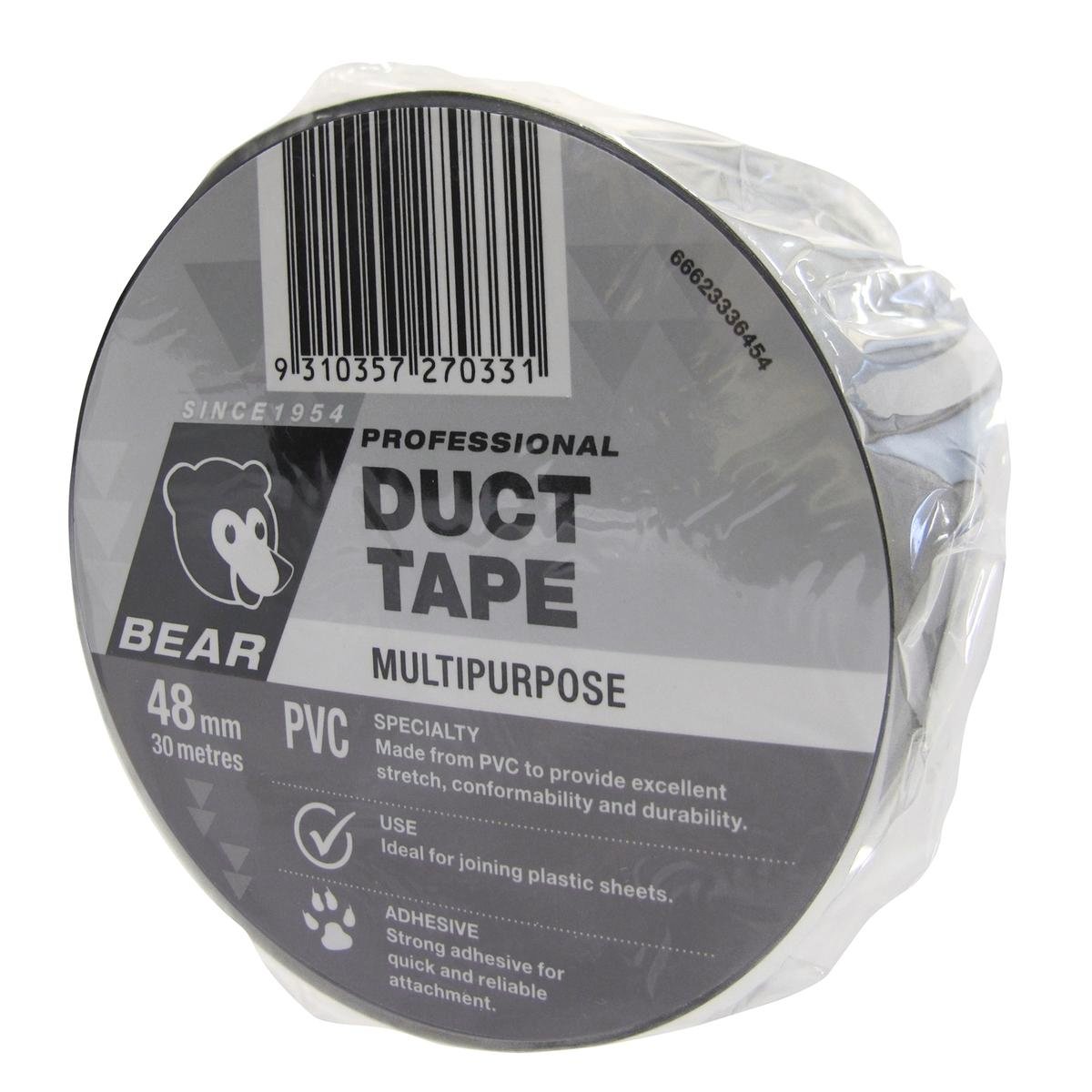 Bear Multipurpose Duct Tape 48mm x 30m Silver PVC Strong Adhesive is designed for reliable attachment and durability.