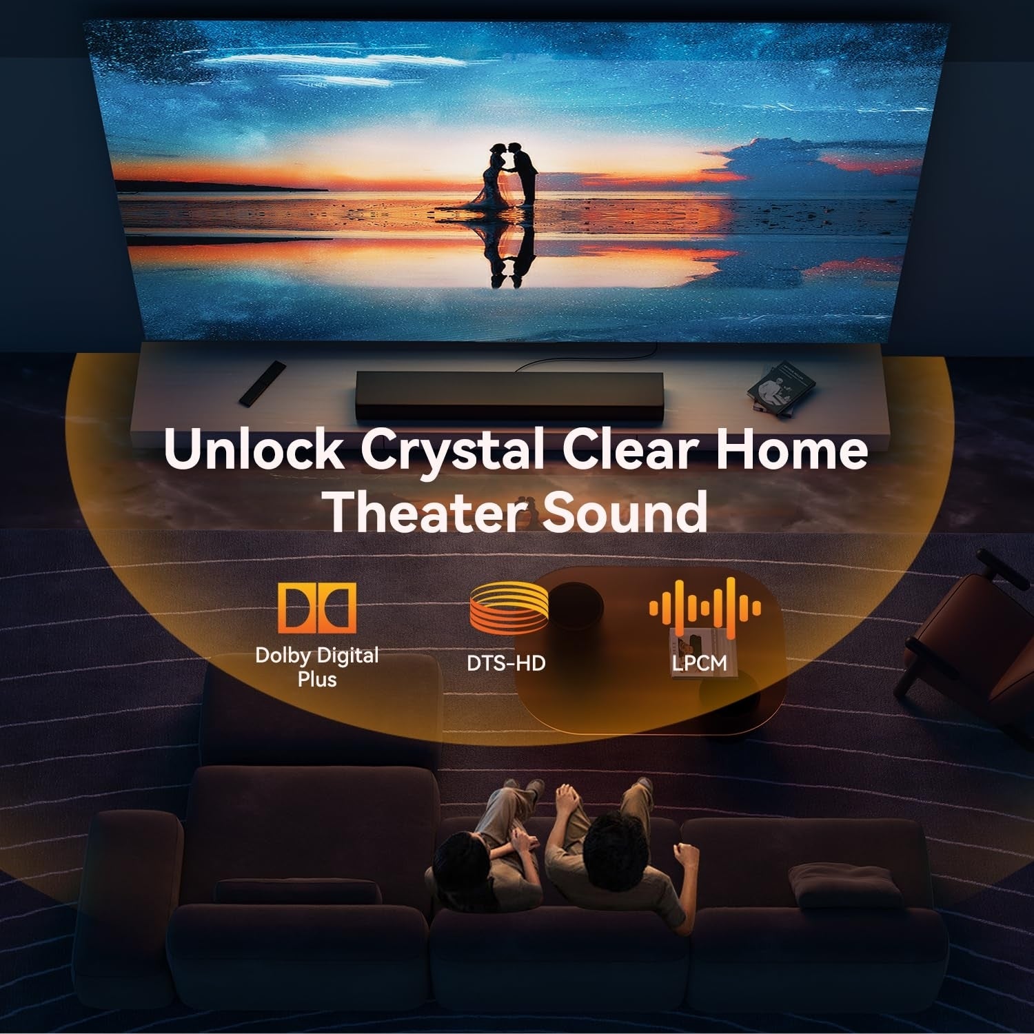 Delivers high-fidelity signal transfer for multi-channel surround sound. Supports uncompressed PCM audio and advanced 5.1 to 7.1 surround formats including Dolby Digital Plus, DTS-HD High Resolution, and LPCM for a fully immersive audio experience.