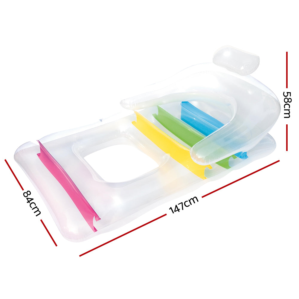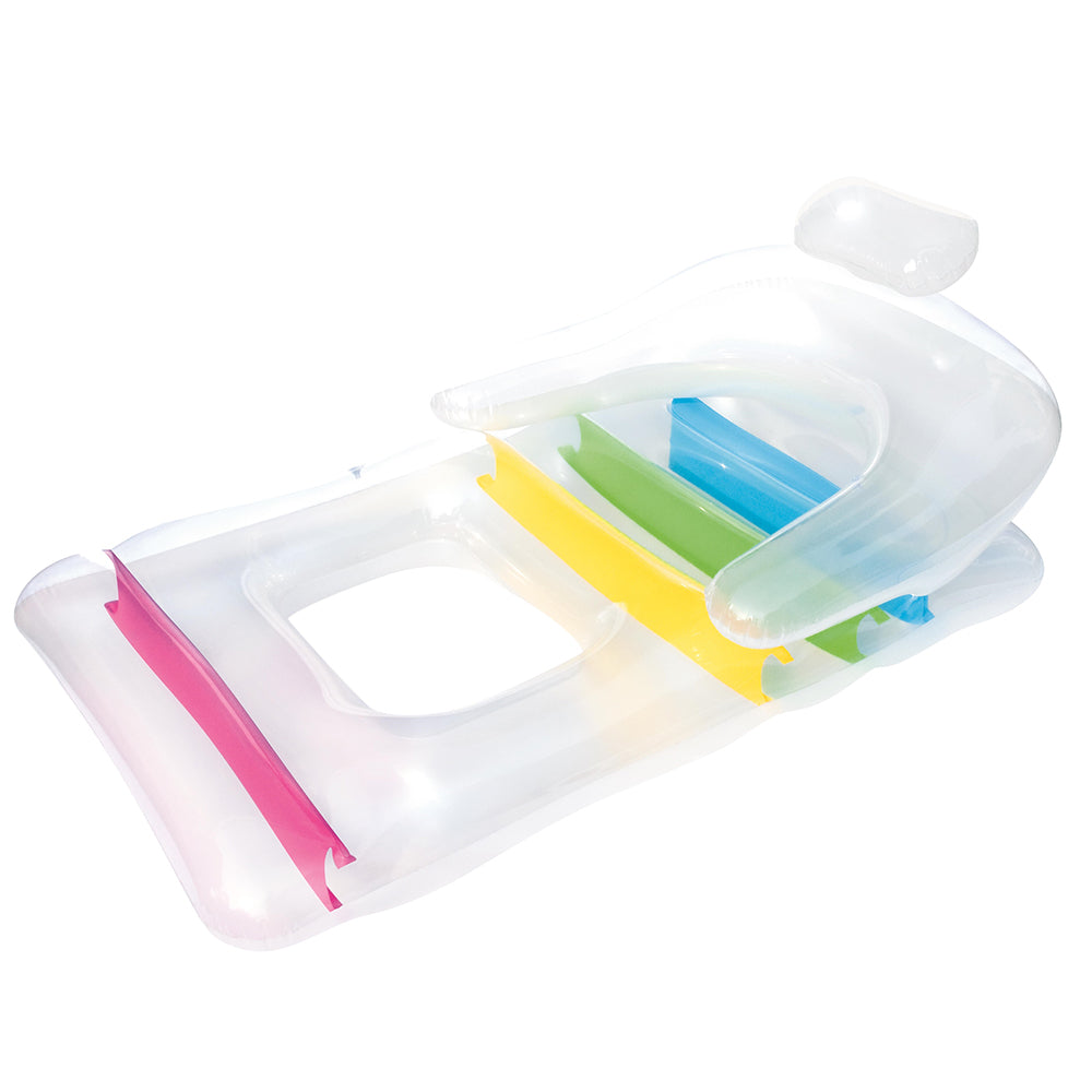 Relax in style with the Bestway Inflatable Lounge Float, designed for poolside enjoyment. Its clear design and colorful interior make it a perfect choice for a fun day in the water.