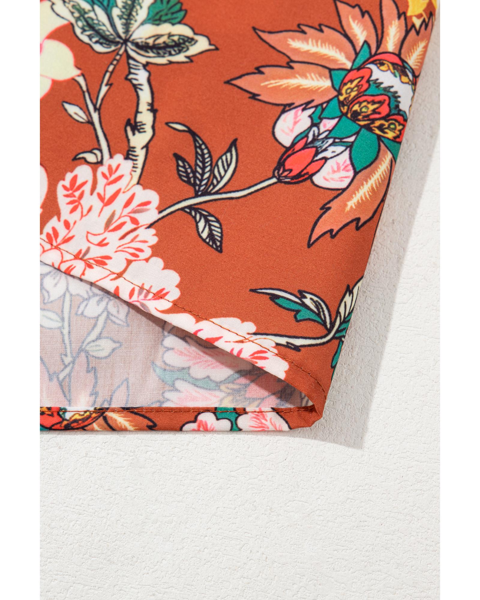 This brown floral blouse offers a comfortable fit and stylish detailing, making it a versatile addition to your everyday Australian style.