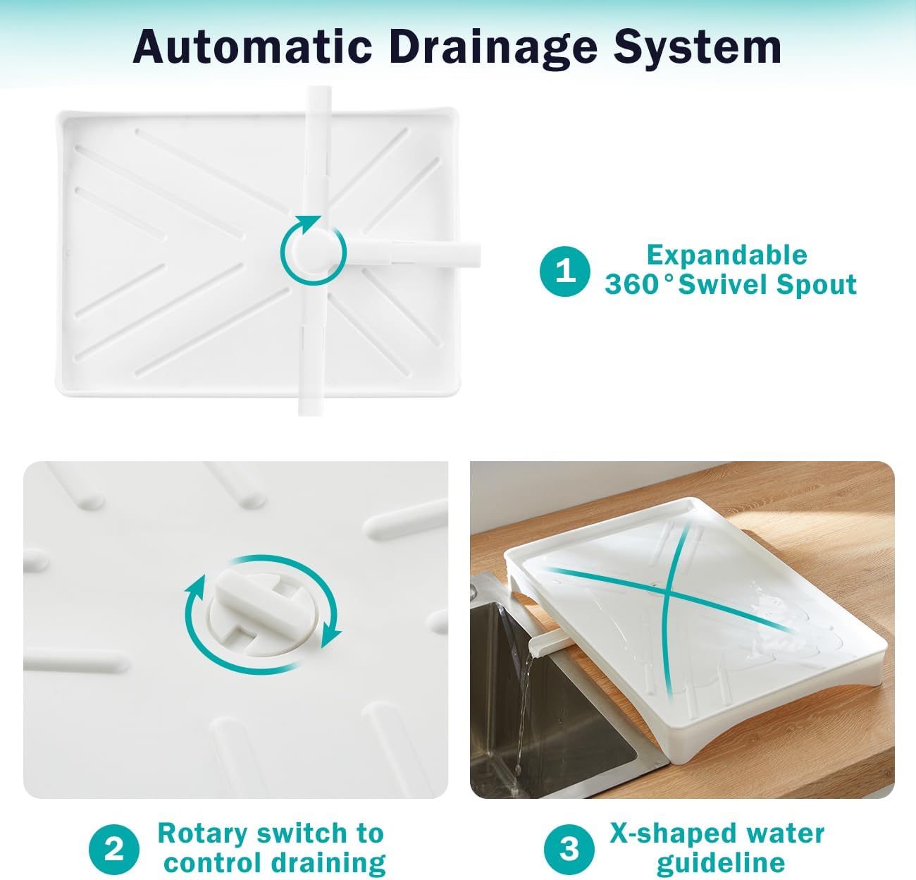 CARLA HOME 2-Tier Large Dish Drying Rack with Drainboard, Utensil Holder, Glass Hooks & Cutlery Storage (White)