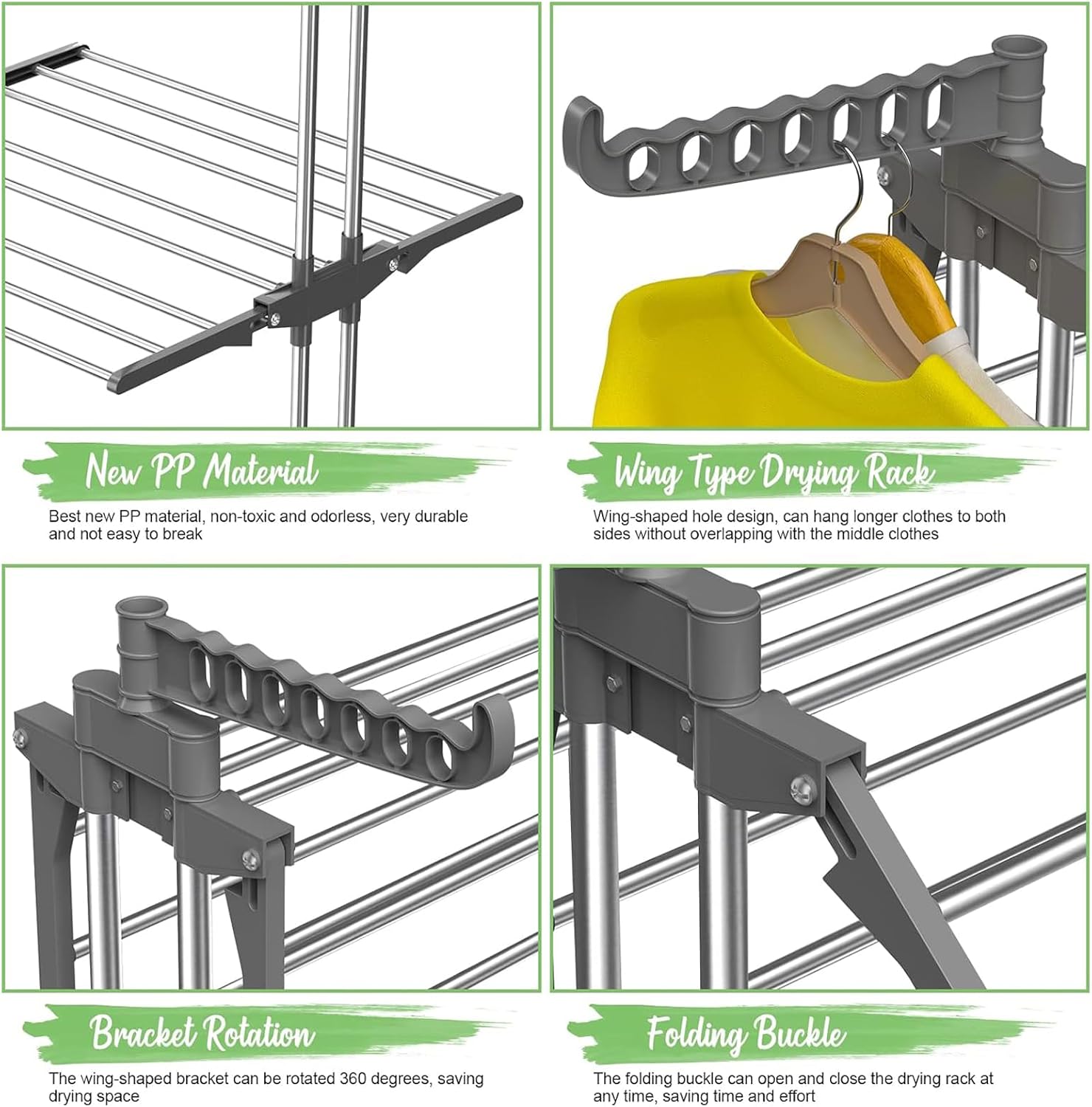 CARLA HOME Folding Clothes Drying Rack with Wheels and Adjustable Side Wings for Laundry Rack and Clothes Storage (Upgraded Model)