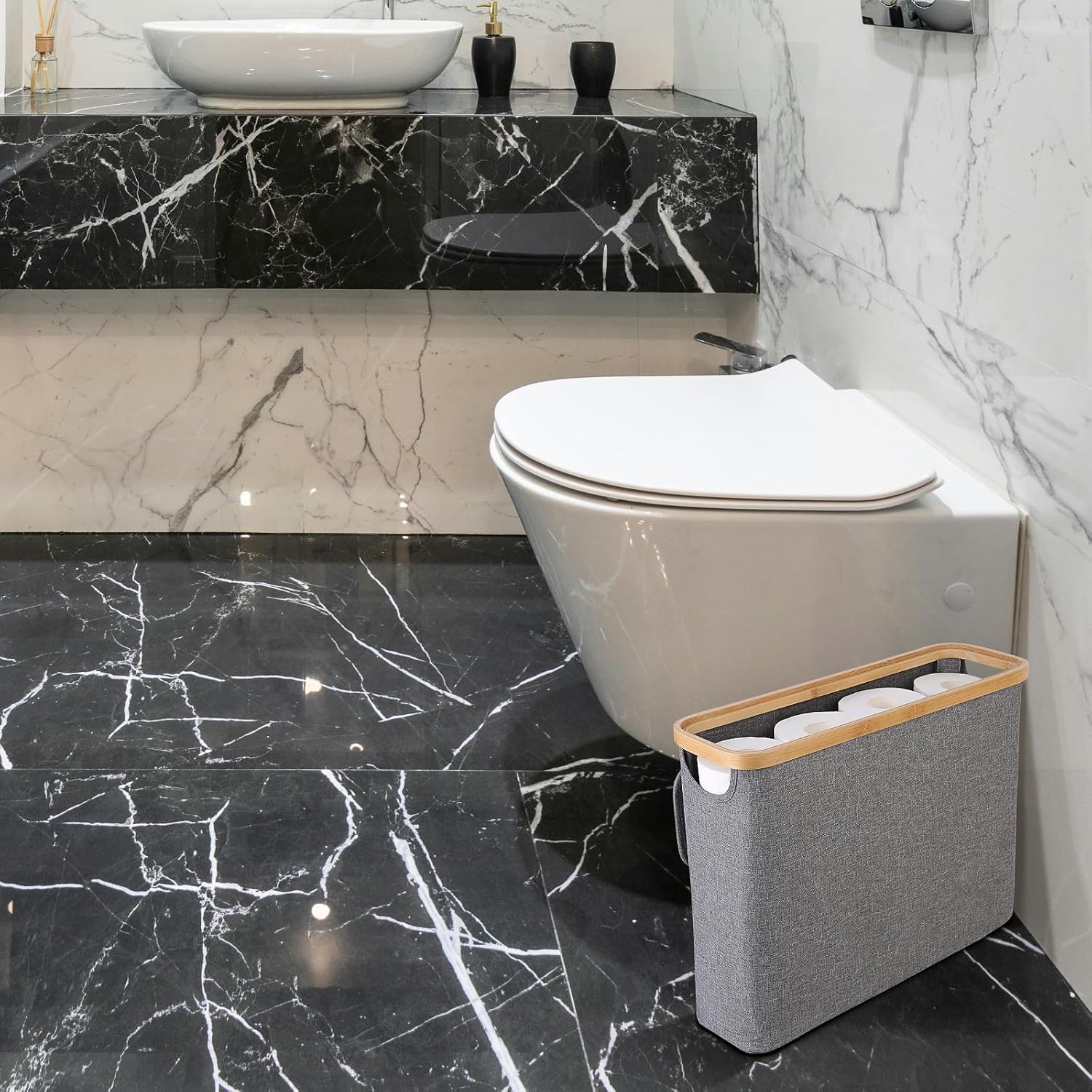 CARLA HOME Toilet Paper Storage Basket Holds Up to 12 Rolls with Bamboo Lid and Handle for RV Closet (Grey)