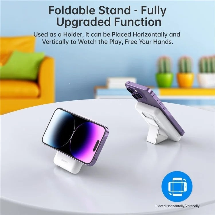 Just magnetically attach it to the back of your phone, and you can enjoy 7.5W wireless fast charging; the foldable stand provides stable support, allowing you to charge your phone while watching it.