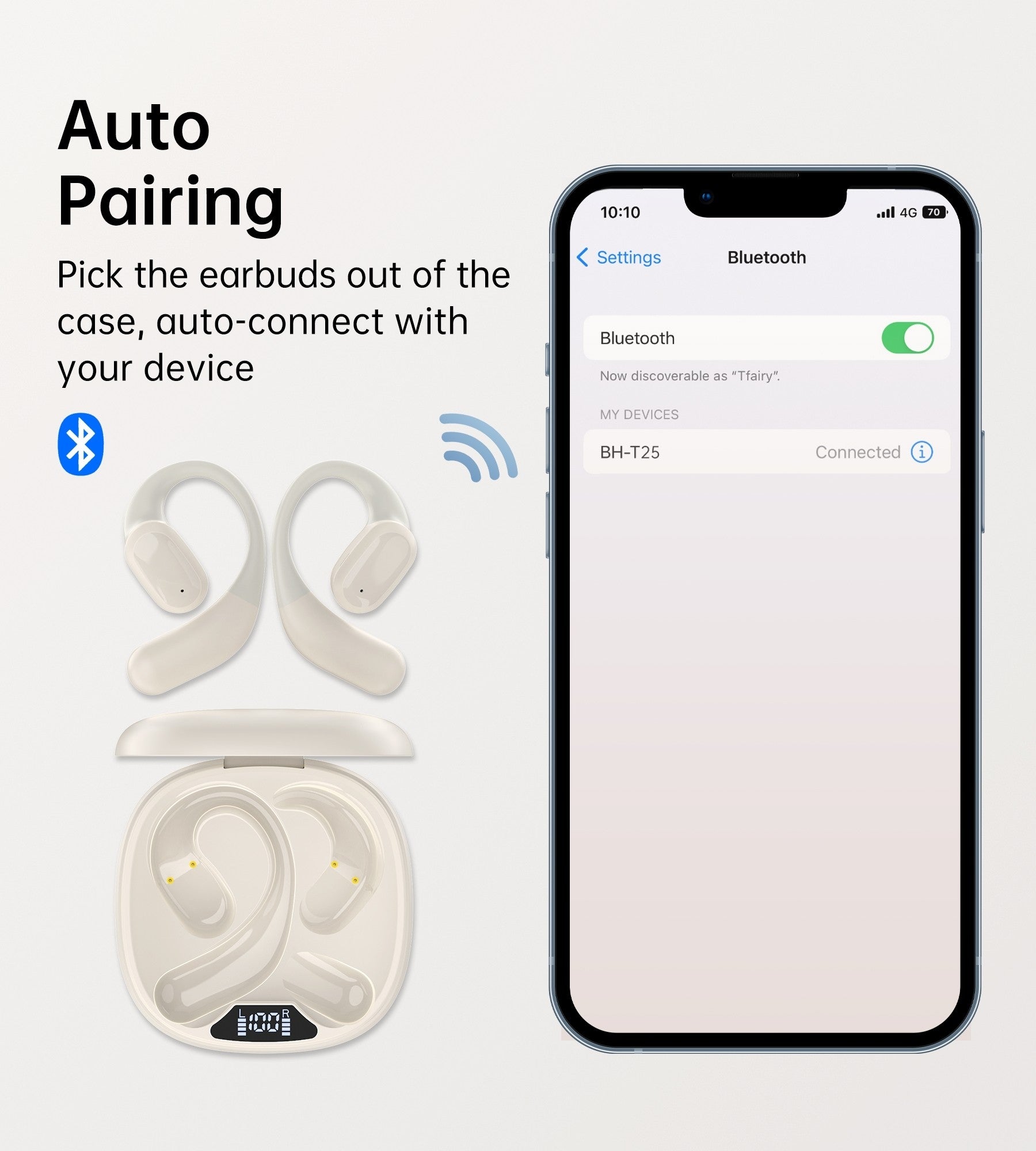 CHOETECH BH-T25 OWS Painless New Concept Bluetooth Earbuds V5.3 TWS White