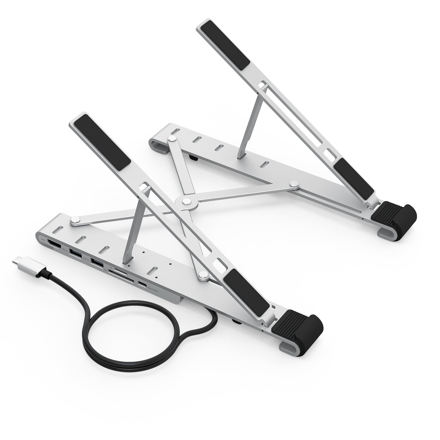 Indispensable for working at homeMost modern laptops have too few ports to handle all the extra hardware you need to create your all-round home office. The solution is a comfortable adjustable laptop stand, which offers user support on various levels.It forces you to maintain the correct position of the bodySeveral factors can affect your productivity. Your discomfort and worse well-being are also influenced by improper posture, excessive movements, forces, pressure points, static loads and many more. You can level them with the use of an adjustable laptop stand.Ergonomic design with 5-step adjustmentFind your best ergonomic posture with a 5-way adjustable stand. Set the right angle whether you want to read, type, take notes, draw, or use external keyboards with laptops and tablets. The kit provides optimal comfort without fatigue in the neck, shoulders, wrists and headaches and eyes.Foldable and portable – fits in a bag and backpackOpen and fold in a split second. The design will easily fit into a backpack, bag or even a briefcase. At the destination, you will pull out the stand, quickly unfold it and arrange the space to work anywhere.Vivid picture in 4K HDMI qualityEnjoy the high-quality display. The HDMI port supports the best resolutions and 3D technology. The image is reproduced smoothly, without delays, vibrations, and stuttering. The synchronization of picture and sound is perfect.Excellent Turbo transmission speedUpload a 1GB movie in 5 seconds? Copying photos from a 32GB memory card in 5 minutes? With high-speed transmission of up to 5Gbps from two USB-A 3.0 ports and 104MB / s from SD / TF card slots, it offers you excellent data transfer rates even with high capacity!