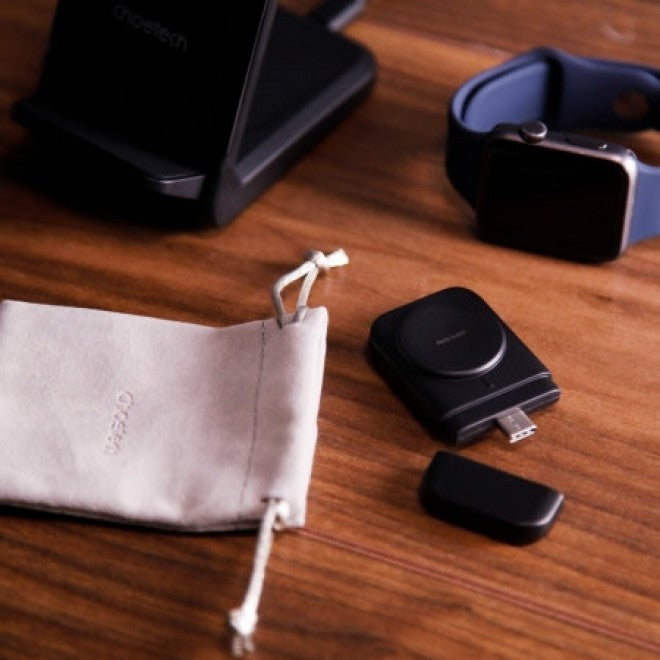 CHOETECH T608-F-BK 15W 4-in-1 Wireless Charger Stand for iWatch and Samsung Watch (Black)