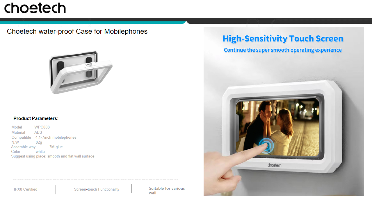 Upgrade your bathroom experience with the Choetech WPC008 phone holder.