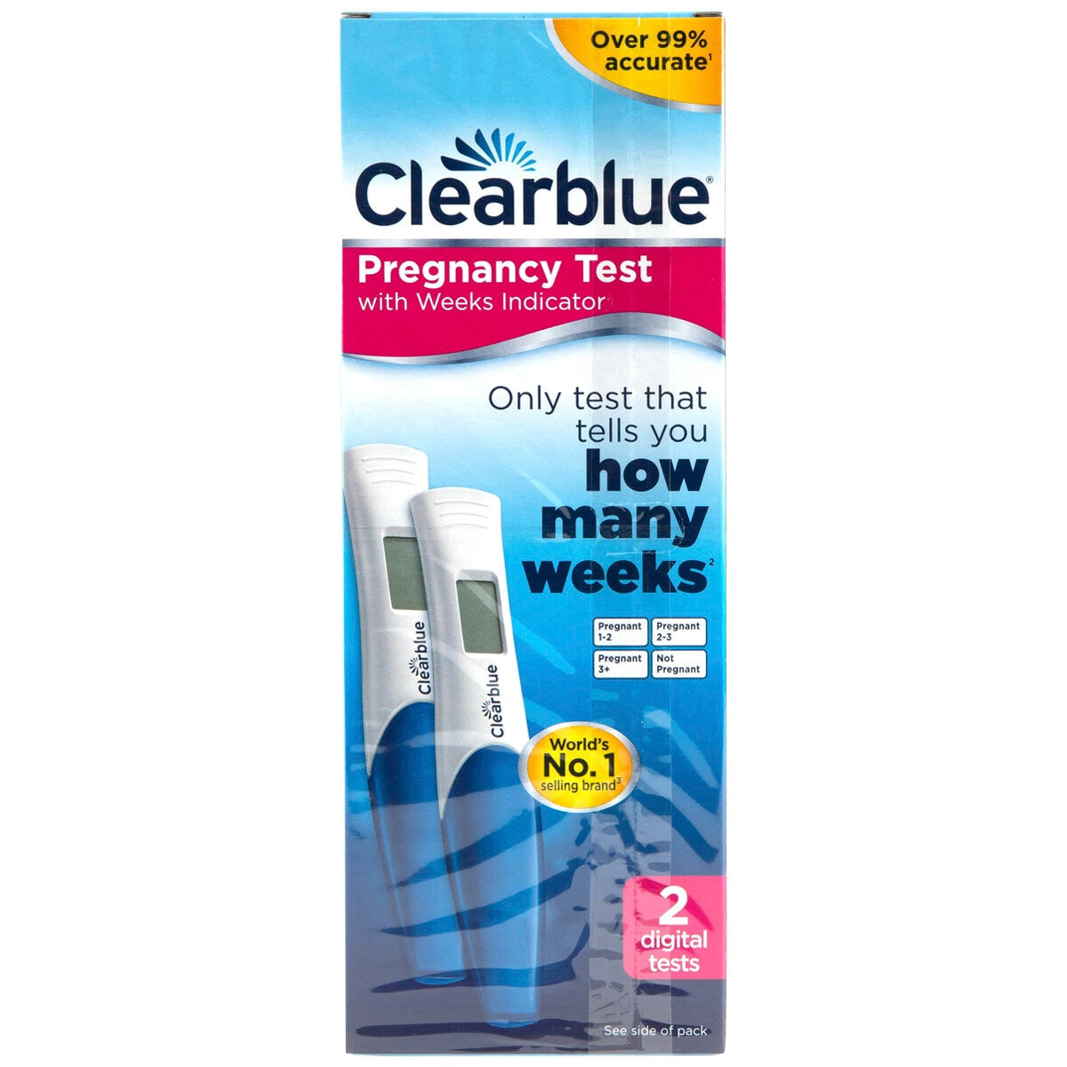 Discover the Clearblue Digital Pregnancy Test with Weeks Indicator, the only test that tells you how many weeks pregnant you are. Experience the accuracy and clarity of Clearblue, renowned for its over 99% accuracy in detecting pregnancy from the day you expect your period.