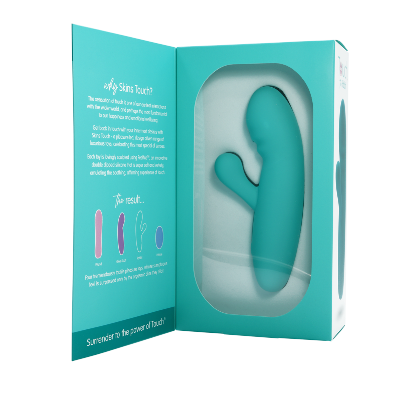 Explore dual stimulation with the Skins Touch The Rabbit, designed for both G-spot and clitoral pleasure. This elegant vibrator offers a luxurious experience.