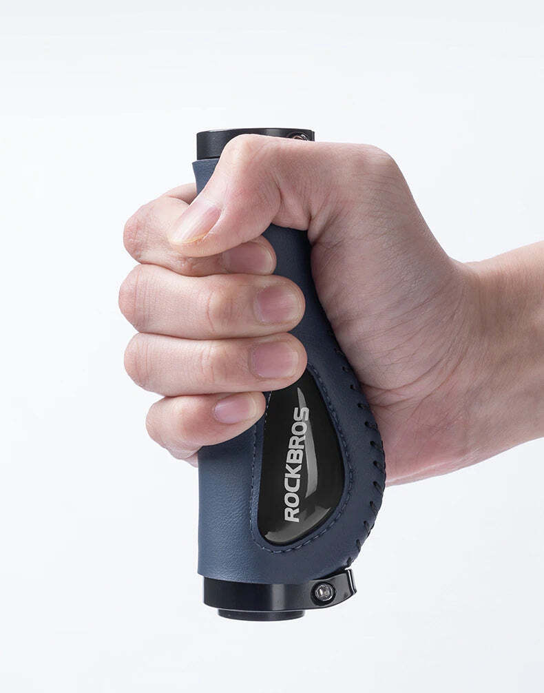Brand: ROCKBROSName: Shock absorbing bike handle bar gripMaterial:Leather + Liquid silicone +Aluminum AlloyMicrofiber suede + TPR rubber + aluminum alloy