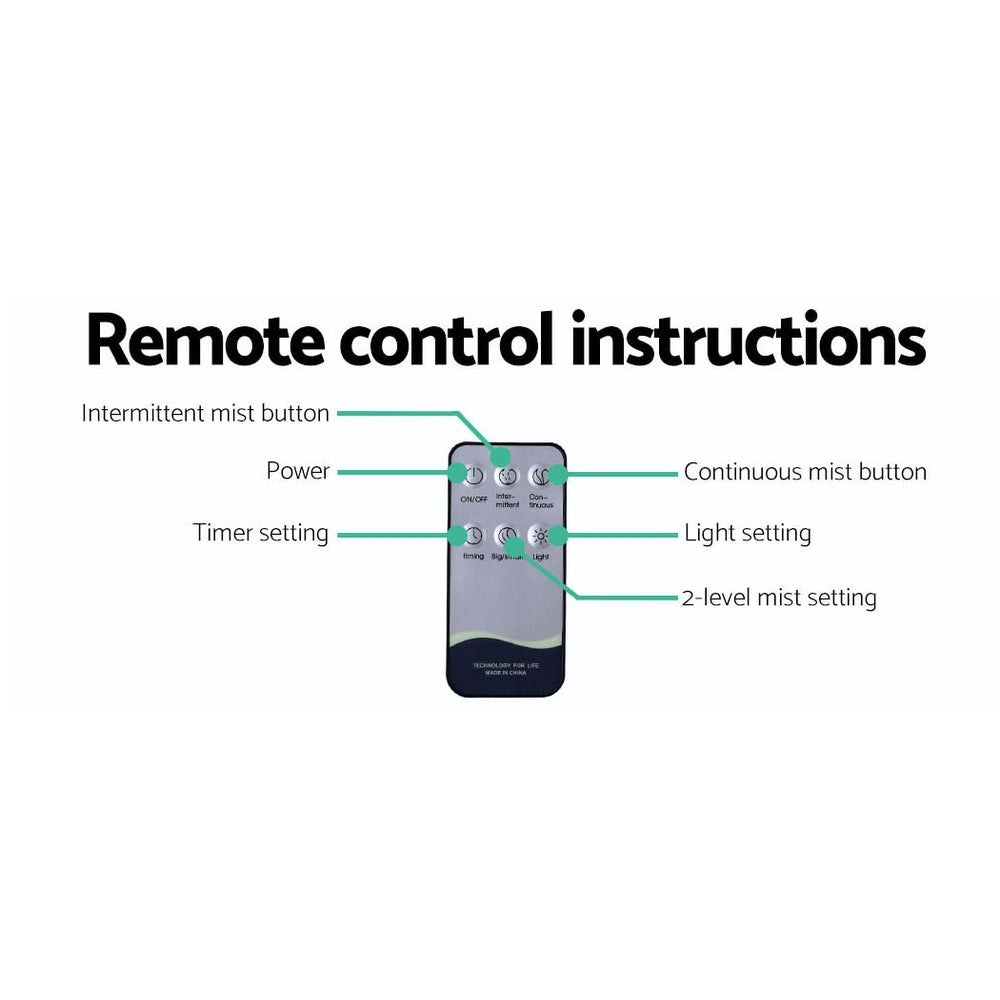 Package Content 1 x Devanti Aroma Diffuser 1 x Measuring Cup 1 x Adaptor 1 x User Manual 1 x Remote control
