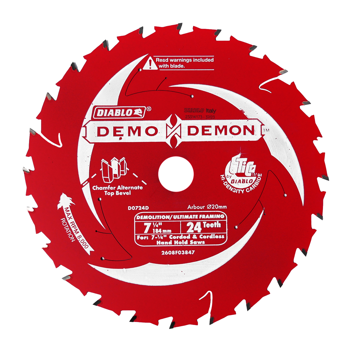 The Diablo Circular Saw Blade Demo Demon 7 25 184mm 24t Framing Demolition 2608f03847 is suitable for various demolition and framing tasks.