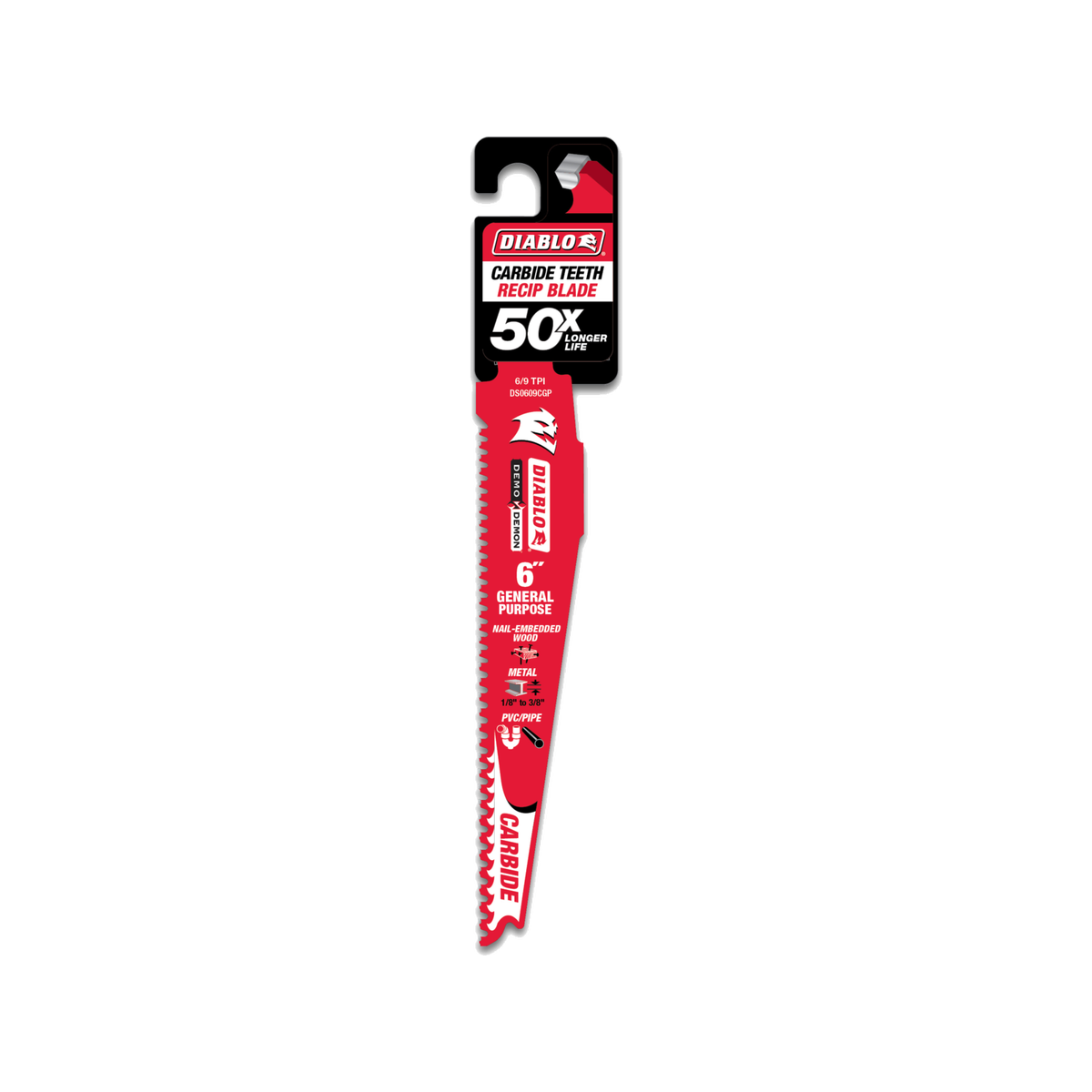 Diablo 6 Demo Demon Carbide General Purpose Reciprocating Saw Blade is designed for wood and metal cutting applications, offering enhanced durability and performance.