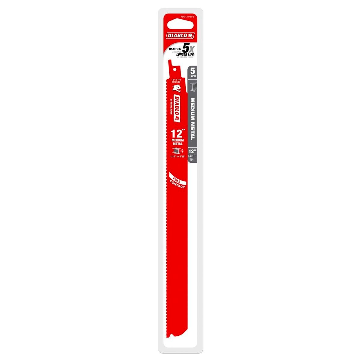 Diablo 12 Bi Metal Reciprocating Saw Blades for Medium Metal Cutting 5 Pack are designed for efficient metal cutting applications, featuring advanced bi-metal technology for durability.