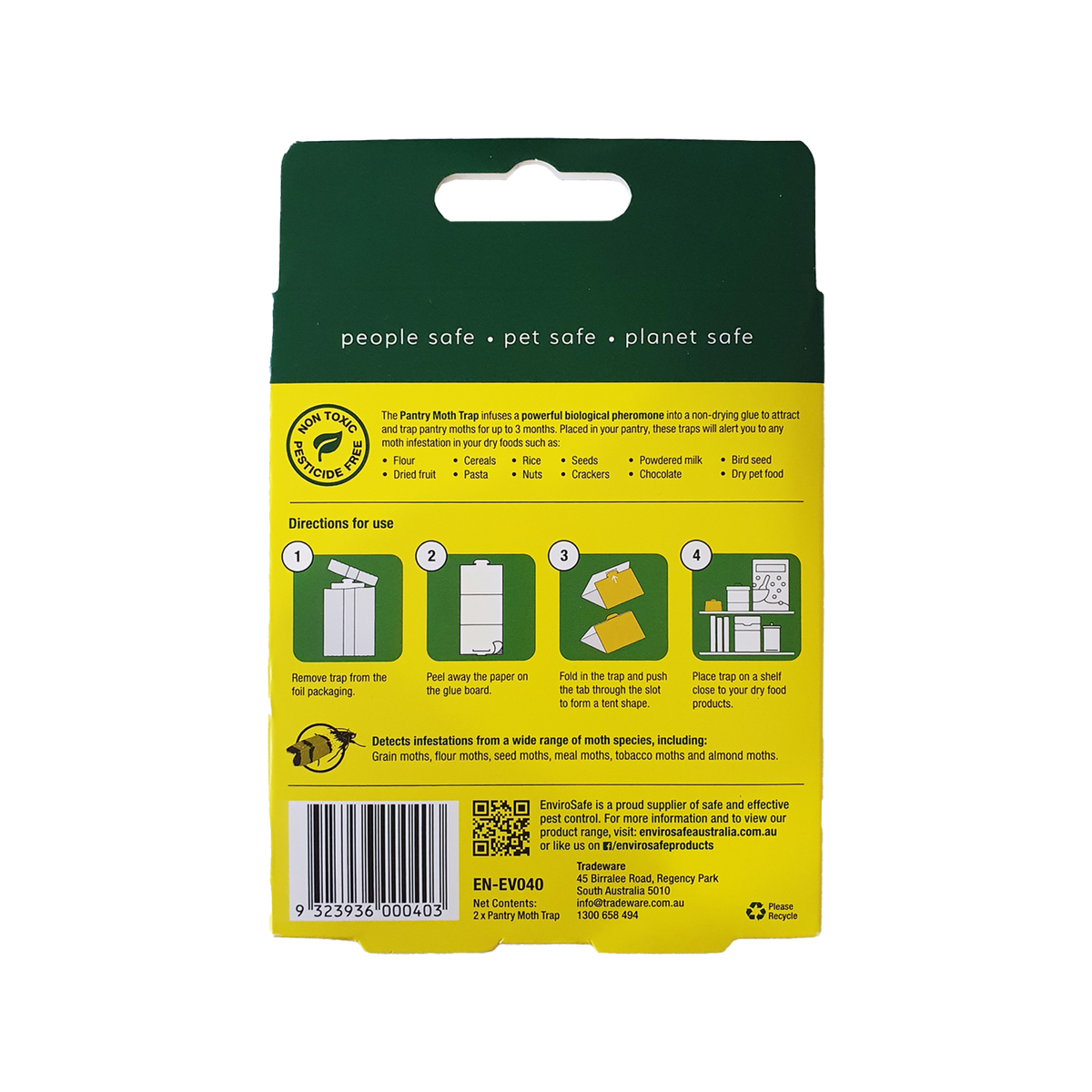 Envirosafe Domestic Pantry Moth Trap 2 Pack effectively detects pantry moth infestations for up to 3 months, ensuring safety near food.