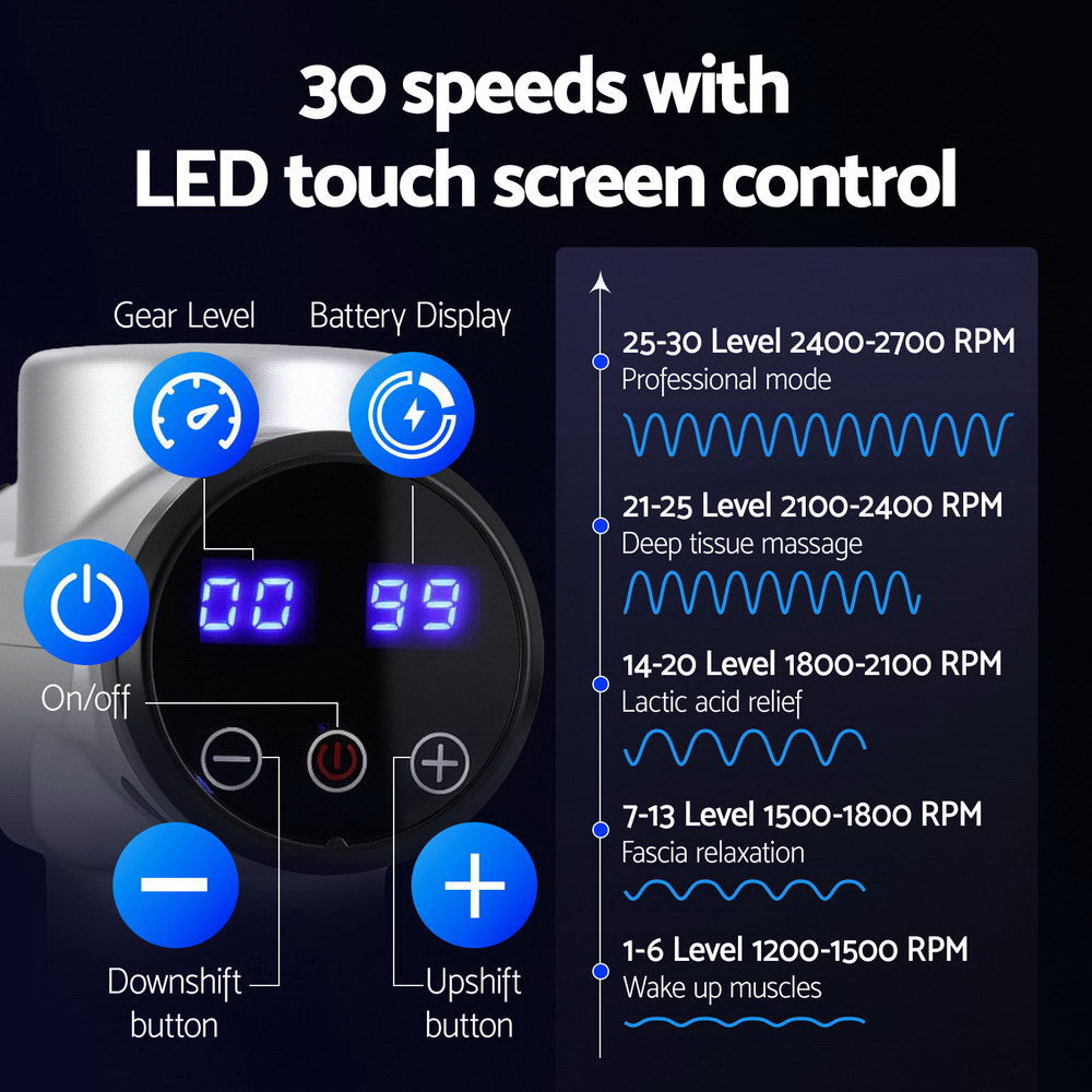 The Everfit Massage Gun provides effective muscle relief with its high-torque motor, allowing up to 2700 strokes per minute. Perfect for recovery and relaxation, it comes with a rechargeable battery lasting up to 2 hours.
