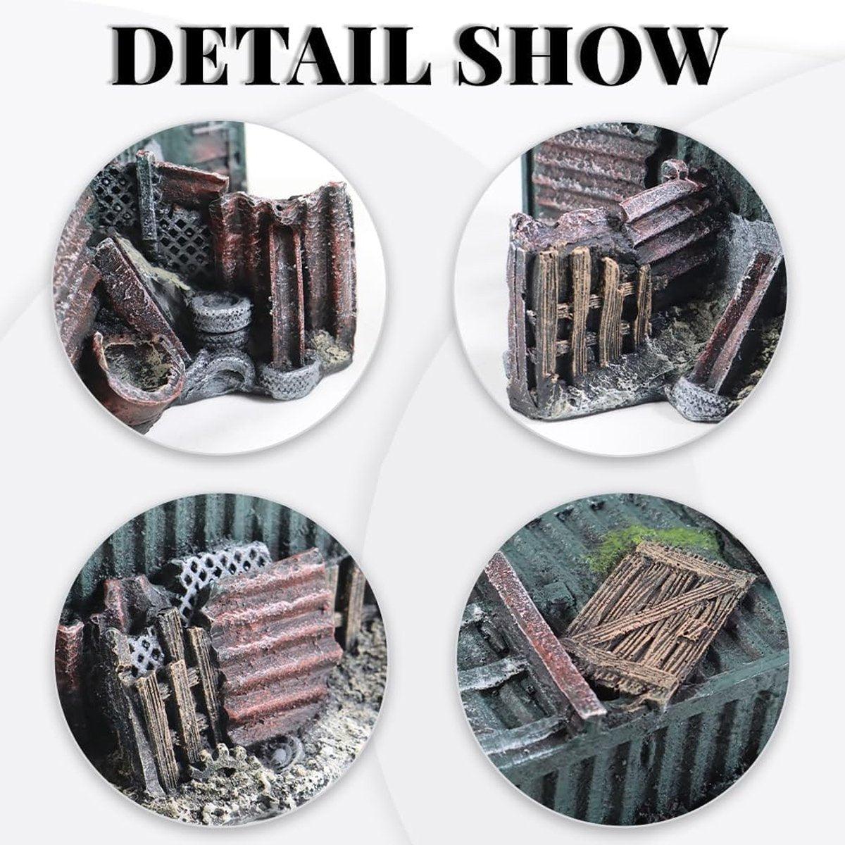 Realistic Wreckage Design: Transform your fish's world with our authentic wreckage container design, adding visual appeal and creating multiple hiding spots to keep them secure. This feature is crucial for reducing stress among aquatic pets.