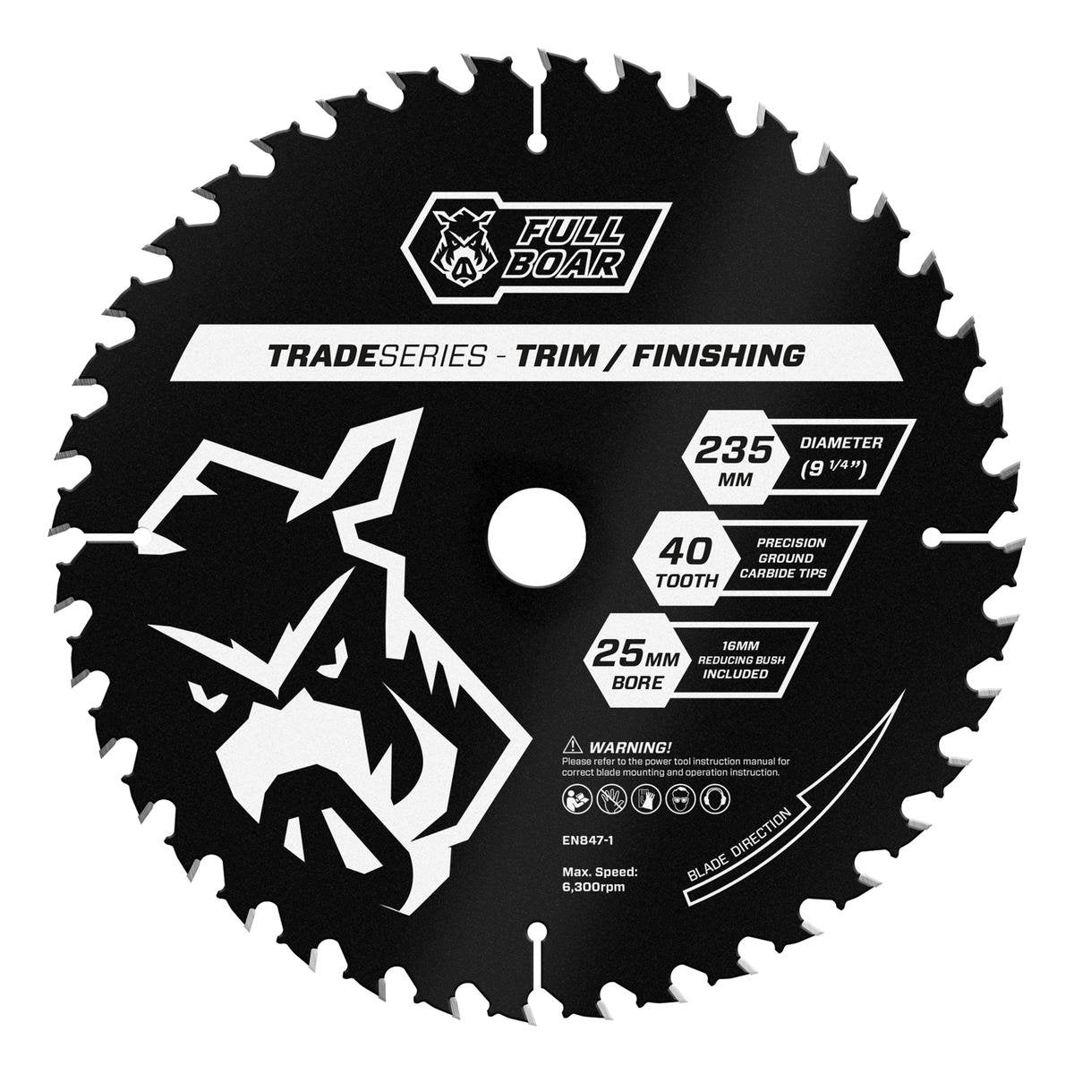 Full Boar 235mm 40t Trade Series Circular Saw Blade is designed for precision cutting in various materials, featuring a durable construction for reliable performance.
