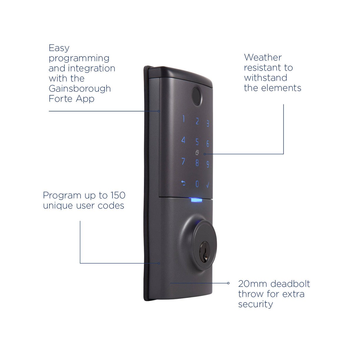 Gainsborough Graphite Mode Smart Deadbolt offers advanced security features including RFID, fingerprint access, and smart home compatibility for modern home protection.