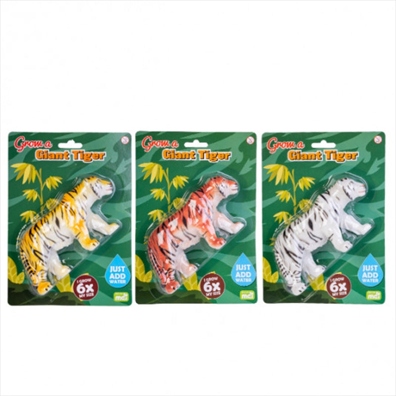 Grow your very own giant tiger Place in water and watch it grow up to 6 times in size in just 72 hours Remove from water and your tiger will shrink back down, so you can grow it again and again! 3 assorted colours: orange, yellow, white (ONE CHOSEN AT RANDOM)