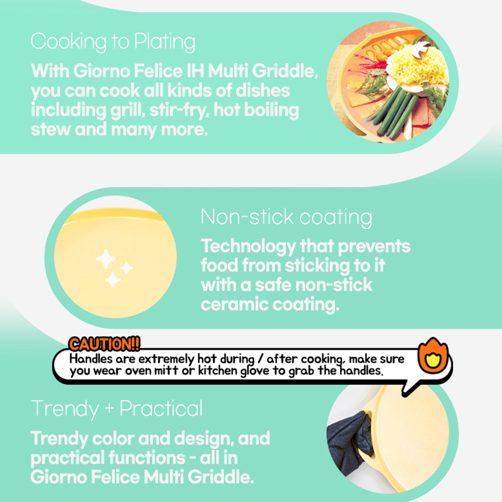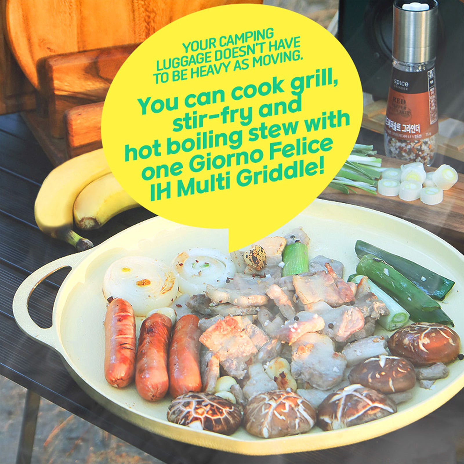 Introducing the Giorno Felice IH Griddle Pan, perfect for camping and Korean stew cooking.