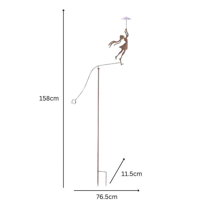 This charming garden stake features a girl holding a yellow umbrella, bringing cheerfulness to your outdoor decor. Suitable for indoor or outdoor use.