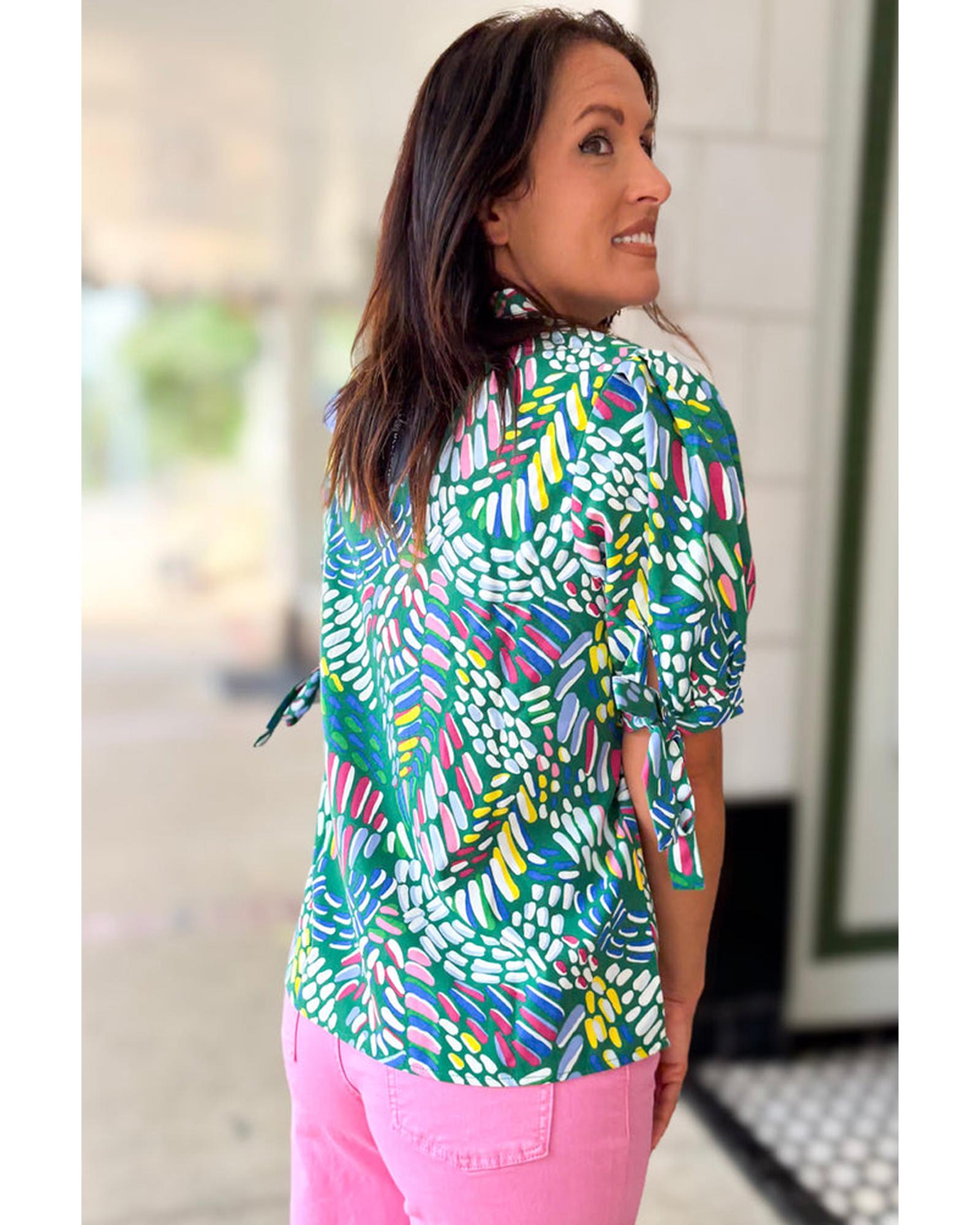 Update your wardrobe with this stylish green abstract print plus size blouse. Featuring a short sleeve design with a chic knotted detail, this top is perfect for Aussies seeking comfortable and fashionable wear. Its sleek, lightweight polyester fabric makes it easy to care for and ideal for everyday style.