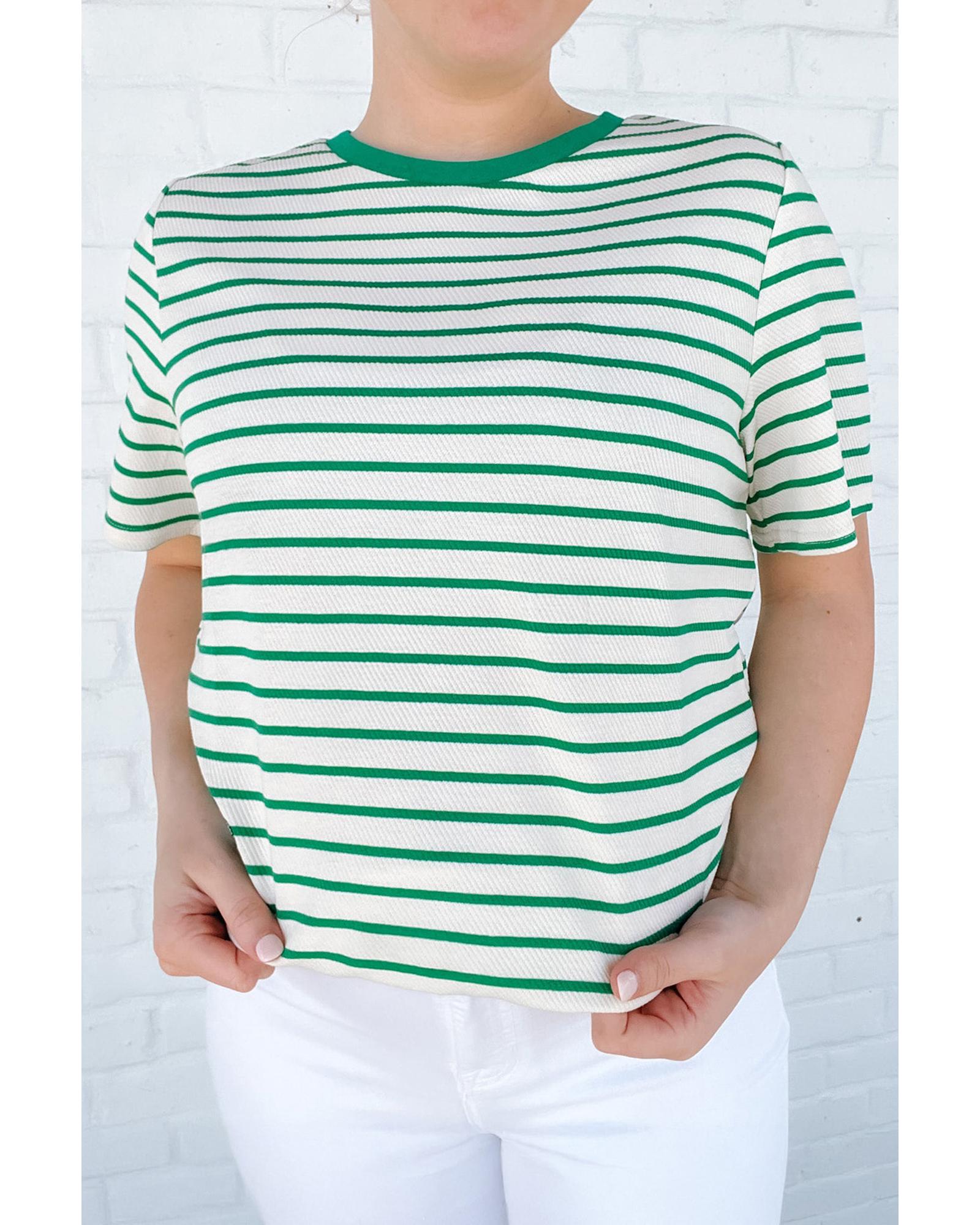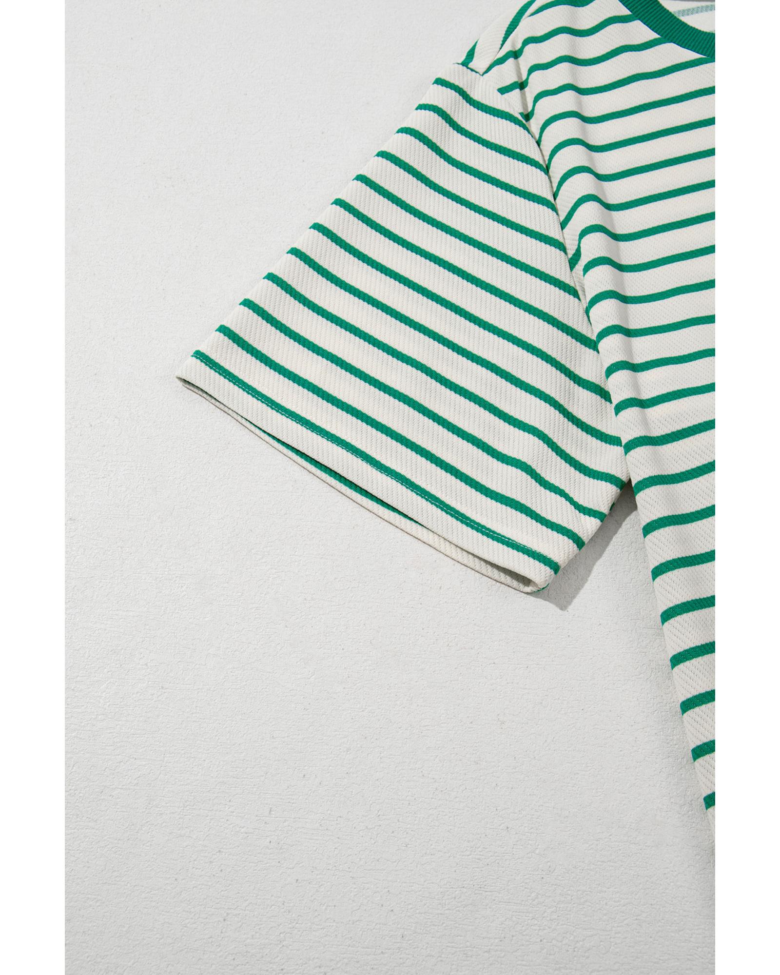 Celebrate St. Patrick's Day in style with this vibrant green striped plus size t-shirt. Designed for comfort and flexibility, it's perfect for casual outings.