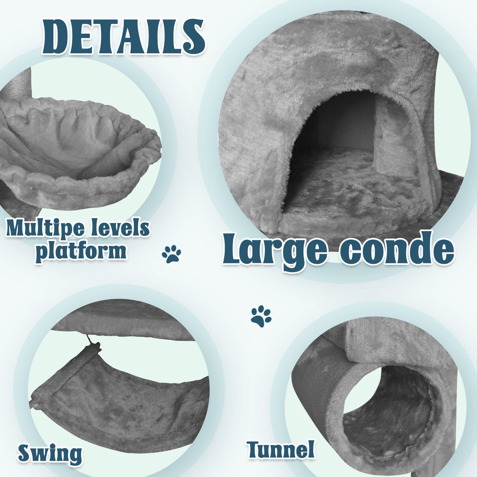 Discover the ultimate playground for your feline friend with our Grey Cat Tree Tower Condo Scratching Post Bed Stand at an impressive size of 1.4M, designed specifically for multi-level fun and easy maintenance.