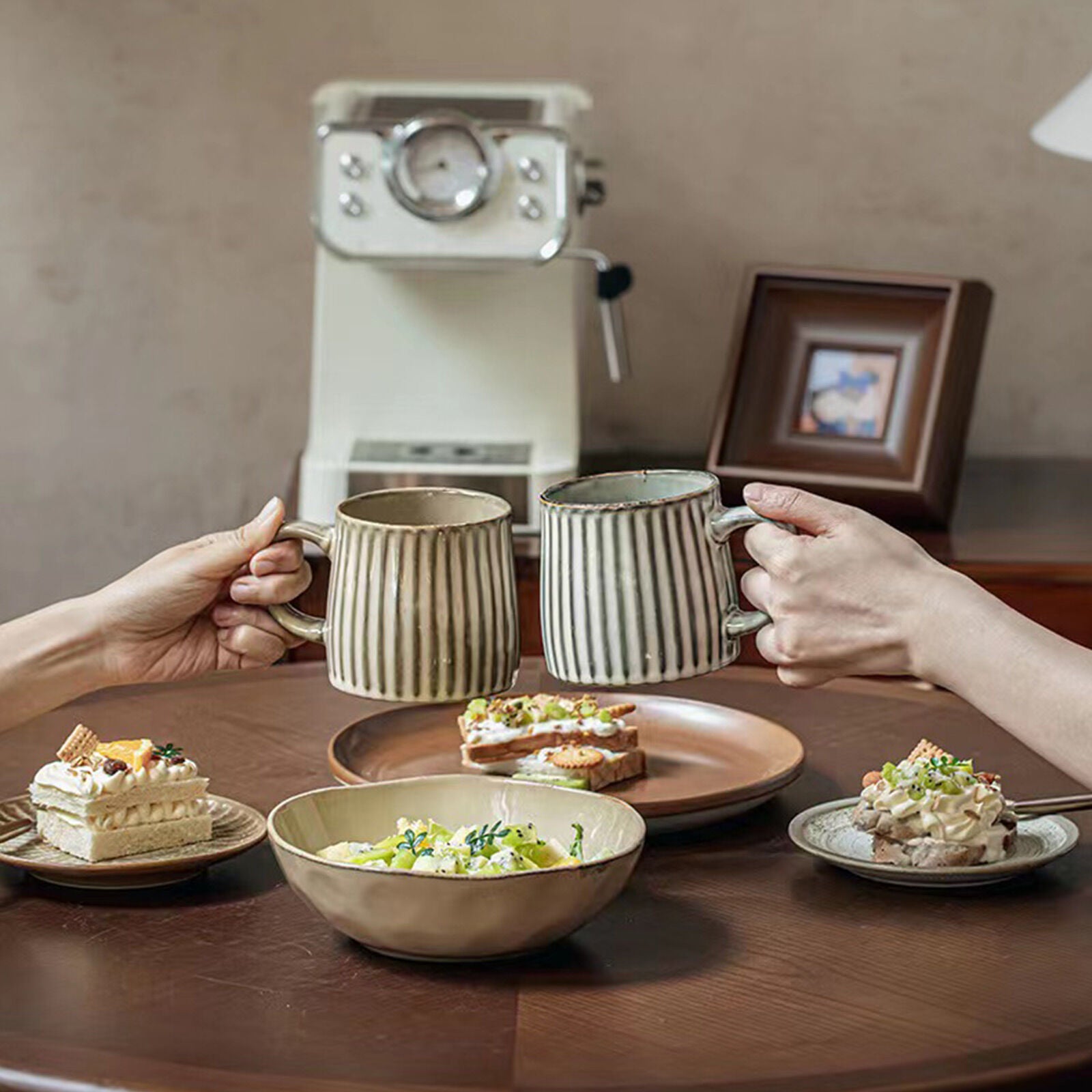 Indulge in your favorite beverages with our Earthy Grey Ribbed Stripe Ceramic Mug. Crafted from high-fired porcelain, this mug combines durability with a sleek design, perfect for daily use.