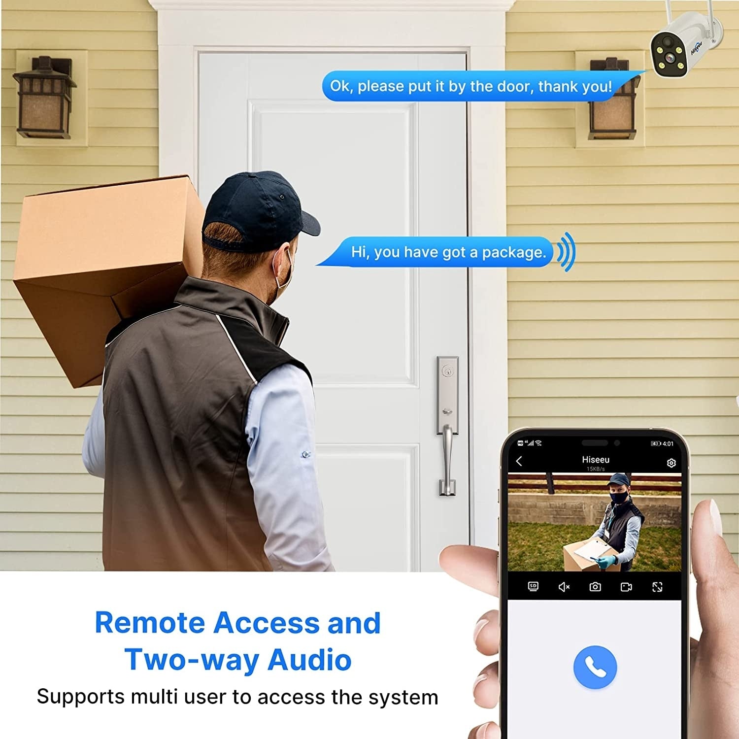 Once you connect your camera to your home WiFi, even when you travel, you can see the person in front of the camera and the two way audio using the camera through the Eseecloud app Hiseeu strictly respects the privacy agreement. All the camera data are encrypted. Only your account can access the data.