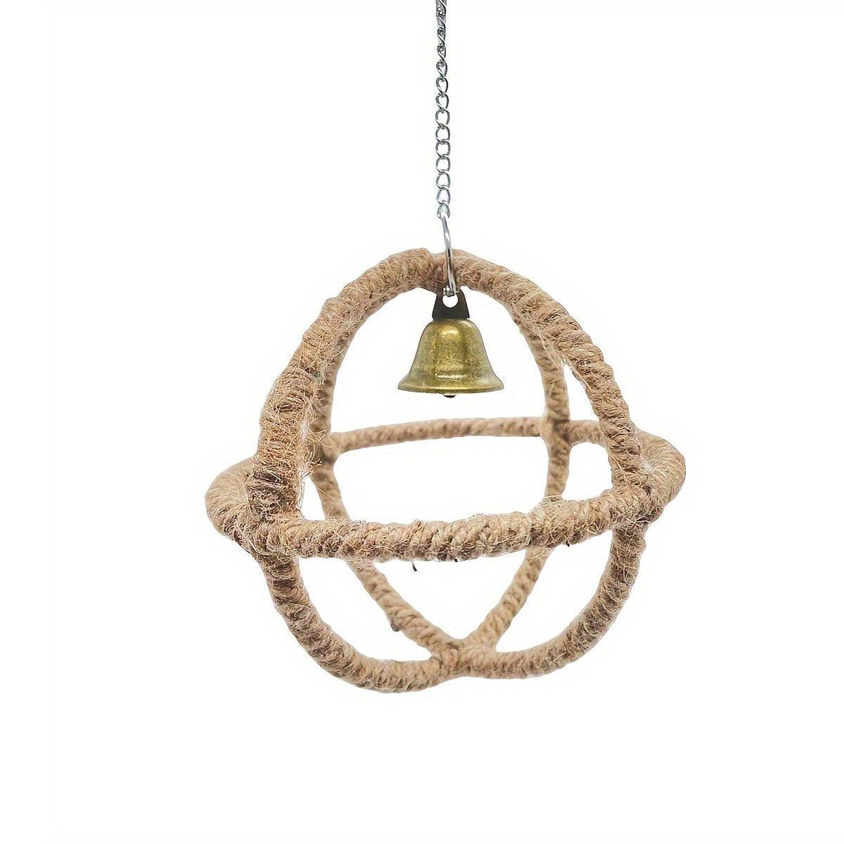 Keep your bird entertained and active with this stimulating parrot toy. Designed with a durable hemp rope and a colourful ball ring, this toy promotes chewing, biting, and swinging, helping to prevent boredom. Its unique design encourages interactive play, making it perfect for parrots, cockatiels, budgies, and other small to medium-sized birds. Made from natural materials, this toy is easy to hang in any birdcage and offers a fun, enriching environment for your pet bird.