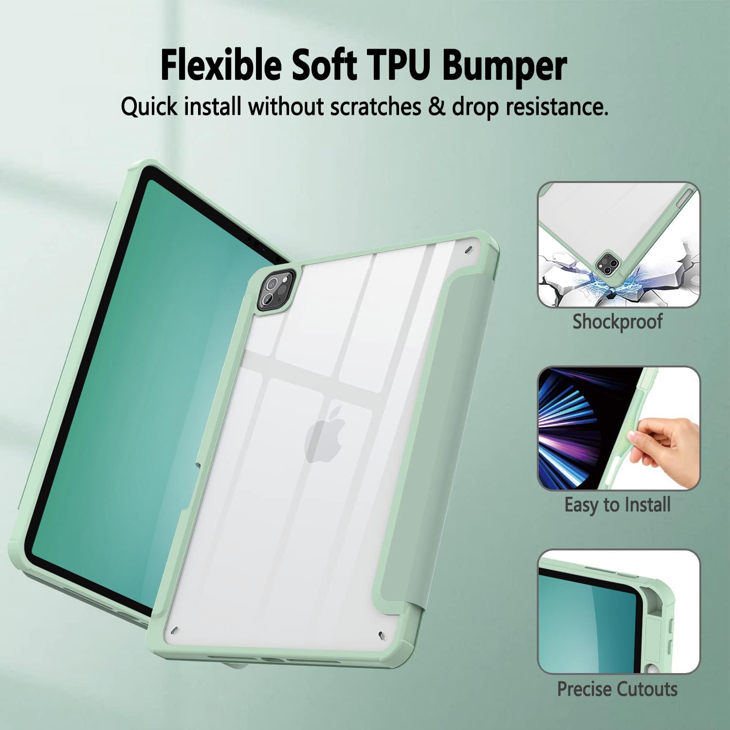 iPad Pro 11 Inch 2020-2022 Soft Tpu Smart Premium Case Auto Sleep Wake Stand Clear Cover Pencil holder Green