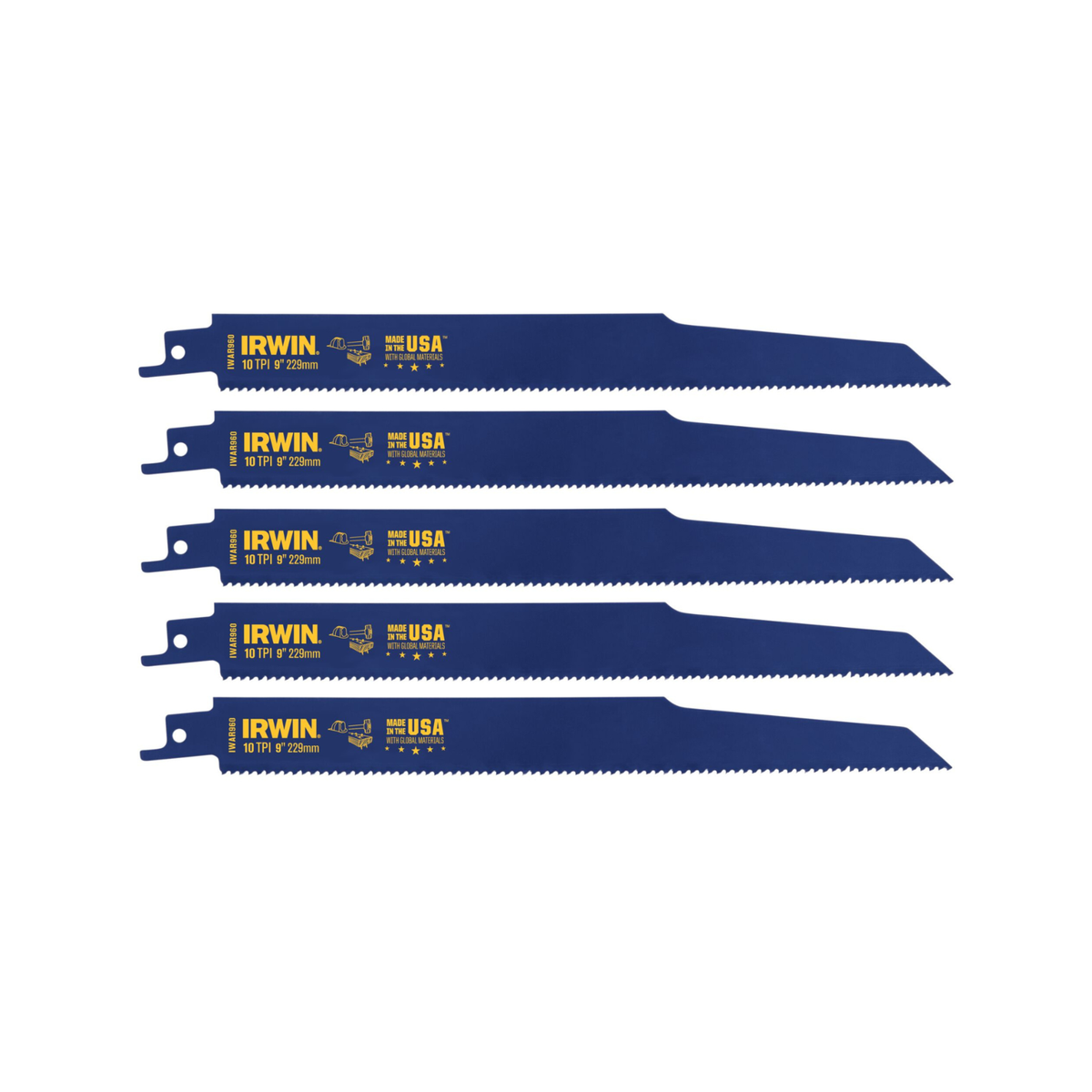 Irwin 9 10tpi Bi Metal Fire and Rescue Reciprocating Saw Blade 5 Pack is designed for durability and efficiency in tough demolition applications, featuring precision set teeth for smooth cutting.