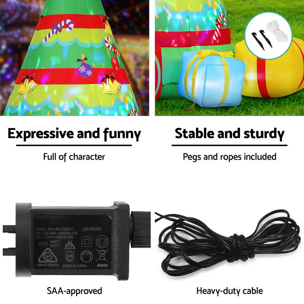 Crafted with water-repellent and UV-resistant materials, the built-in air blower ensures effortless inflation. For quick storage, simply unzip and deflate. Pegs and ropes are also included for secure ground anchoring, bringing you peace of mind. Create a magical holiday display effortlessly with this delightful inflatable centerpiece! Counting down to Christmas! Get yours early to avoid busy logistics when approaching Christmas!