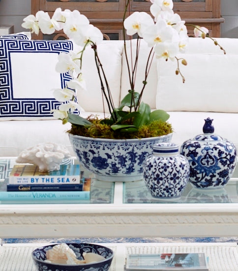 Enhance your home decor with this aesthetically pleasing blue and white ceramic ginger jar.