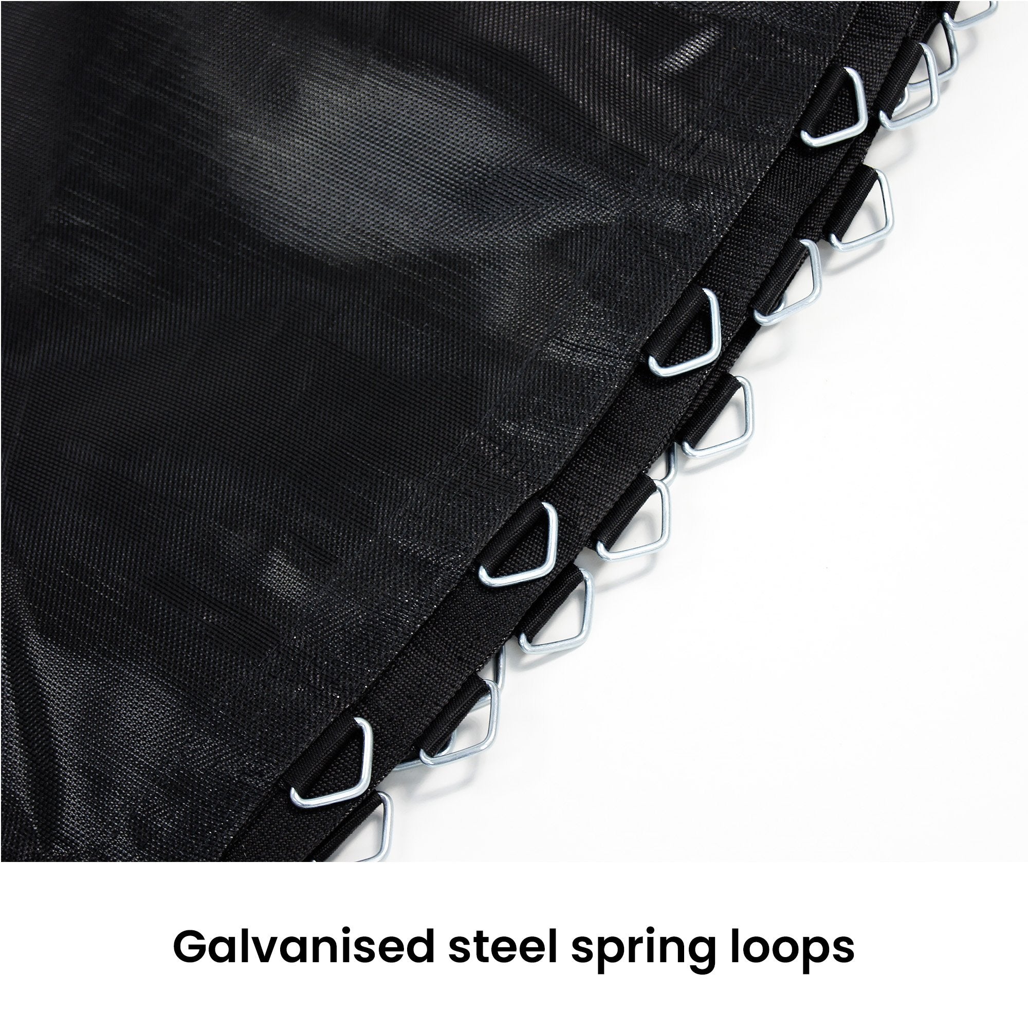 V240-TRP-MAT-EMJ-16Please measure the DIAMETER of your mat, the number of spring LOOPS and the LENGTH of your springs to ensure the mat is the correct size. Please choose your product carefully. Incorrectly purchased items will only be accepted for store credit if they are returned to us at the buyers' expense, in their original condition and packaging, exhibiting no sign of testing, nor use, and subject to a 30% re-stocking fee on the purchase price of the product.Size: 8ft (suits 135mm springs), spring loops: 48Size: 10ft (suits 135mm springs), spring loops: 64Size: 12ft (suits 165mm springs), spring loops: 72Size: 13ft (suits 165mm springs), spring loops: 84Size: 14ft (suits 165mm springs), spring loops: 96Size: 15ft (suits 165mm springs), spring loops: 108Size: 16ft (suits 185mm springs), spring loops: 108