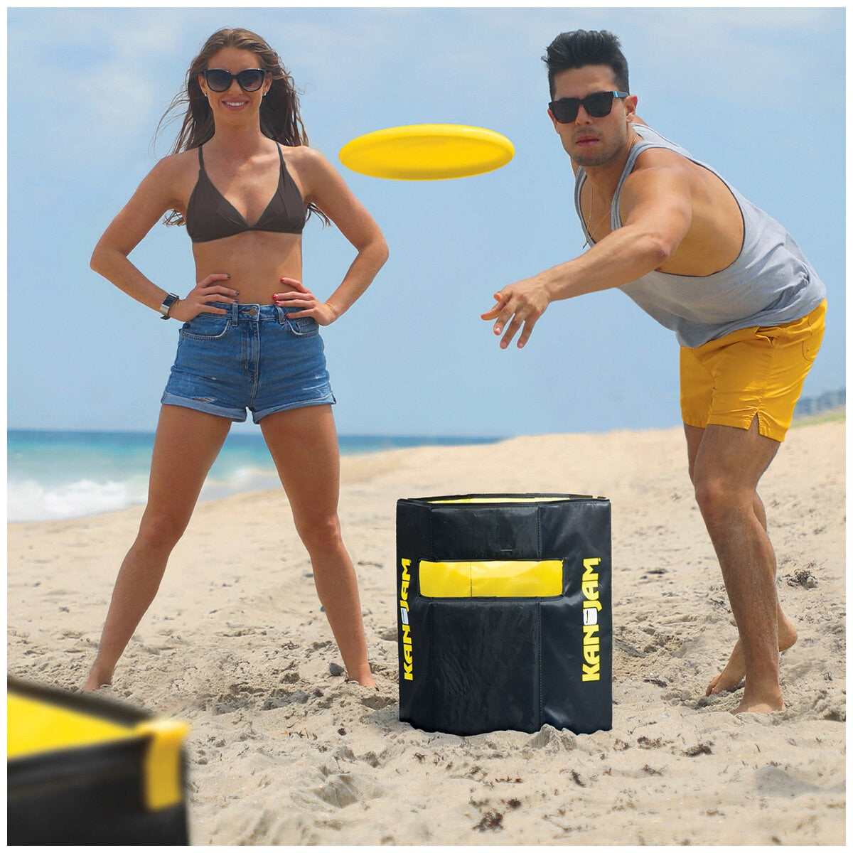 With the built-in scoring system, you can effortlessly keep track of the action, adding a competitive edge to your game without the need for separate scorekeeping. Designed to withstand various weather conditions, this Kan Jam set is ready for the beach, campsite, and everywhere in between, making it an ideal choice for outdoor enthusiasts.