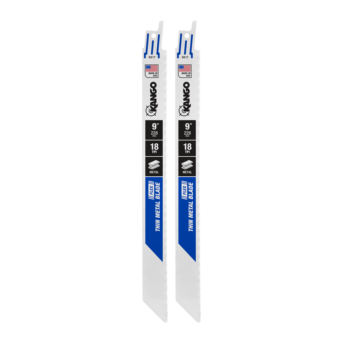 Kango 9 18 Tpi Metal Flex Reciprocating Saw Blades 2 Pack are designed for cutting thin gauge metal and embedded nails in renovation and demolition applications.