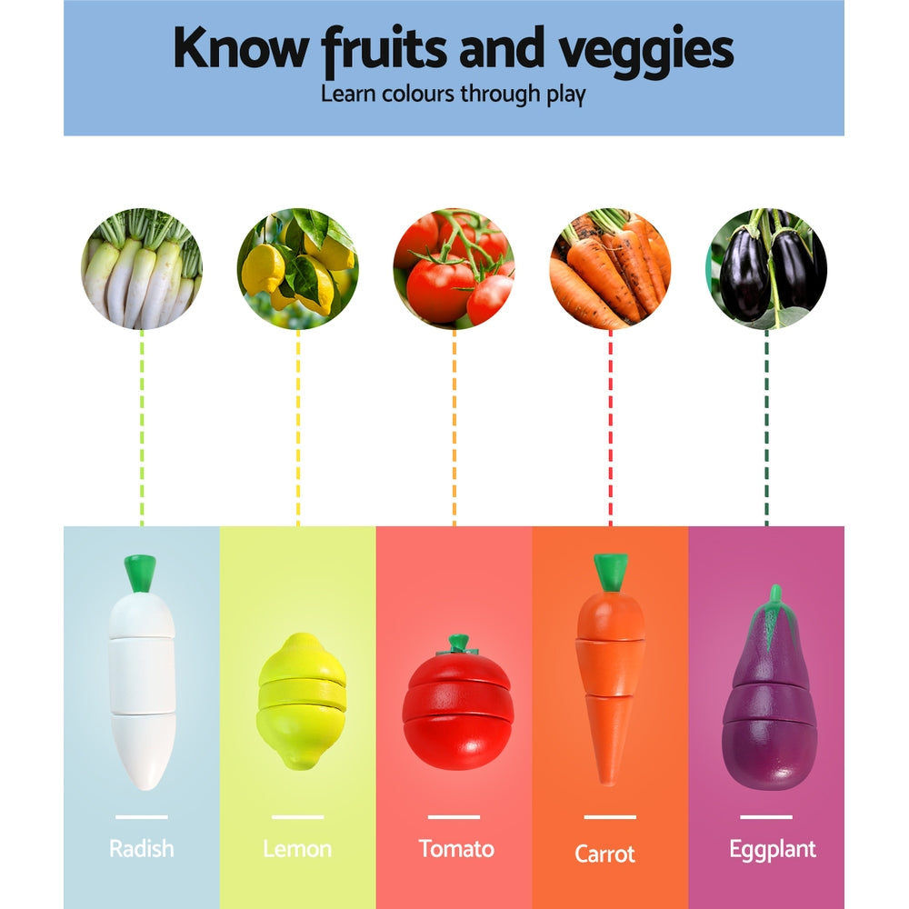Features: 29-pc fruits, vegetable and utensils set Colorful design Lead-free and non-toxic paint Pretend play food magnetic connected Smooth surface for easy cleaning Storage box for easy clean-up Made of solid wood Recommended age 3 years and above Adult supervision recommended at all times AS/NZ 8124 Safety of Toys certified