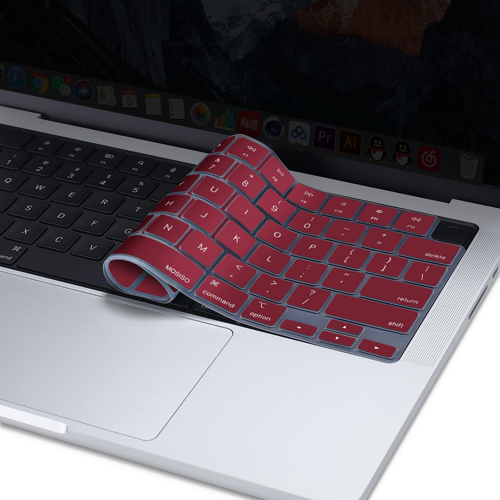 Keyboard Cover Skin For MacBook Air Pro 13 13.6 14 15.3 16 A2442 A2779 A2485 A2780 A2681 A2941 M1 M2 2021 to 2023 Wine Red