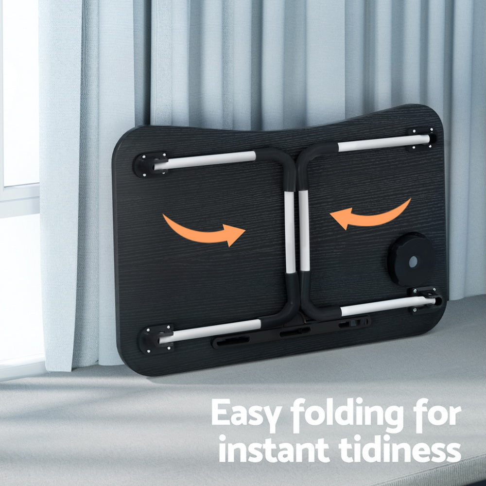 Work smarter and more comfortably with the Artiss Laptop Desk, a versatile workstation designed for modern needs. With a large desktop that accommodates 17-inch laptops, this desk is perfect for work, study, or leisure. Its sleek, foldable design ensures easy storage and portability, making it ideal for small spaces or on-the-go use.Thoughtfully designed, the desk includes a non-slip steel frame for stability, a built-in slot for tablets or phones, and a handy cup holder for added convenience. Whether you're working from bed, the couch, or outdoors, this desk provides a safe and practical solution to enhance your productivity and comfort.