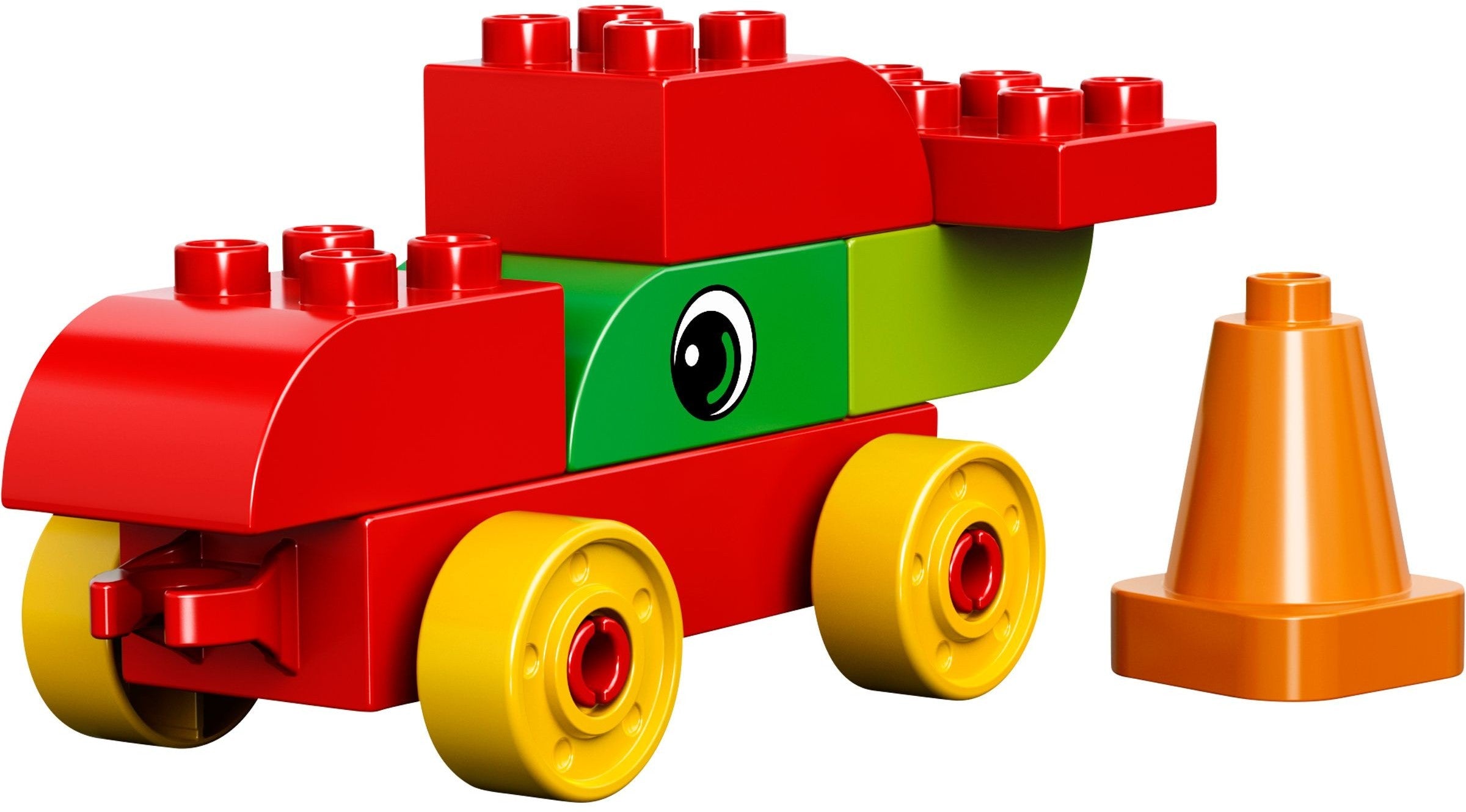 Add to your child’s LEGO® DUPLO® collection with this great set of brightly coloured classic LEGO bricks. It includes decorated eye bricks for creating wonderful characters and animals as well as waggon bases to inspire your child to create their own vehicles. With such a great selection of bricks, the play possibilities are endless. All the bricks fit into this lightweight cardboard suitcase for toddlers who like to build on the go. You’ll also find inspiration for fun DUPLO play printed inside the suitcase.