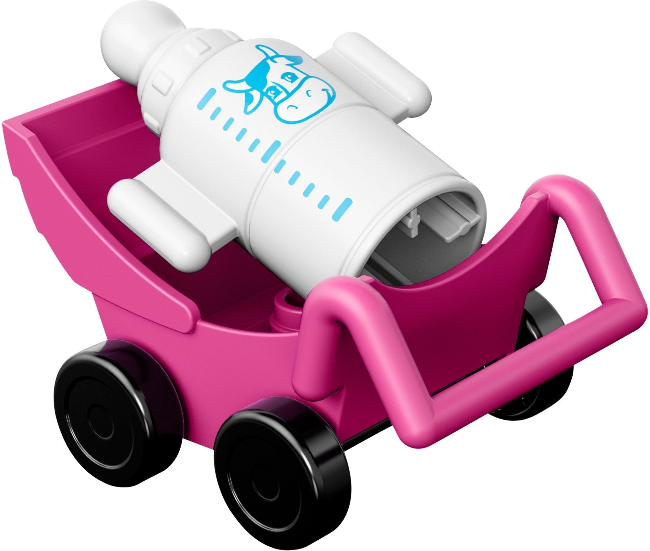 Take Mum and Baby for a springtime walk in the park! Sit down on the seats to give Baby a cuddle and a feed with the bottle. Then head off again with the stroller to admire the trees and flowers. Includes 2 LEGO® DUPLO® figures: Mum and Baby.