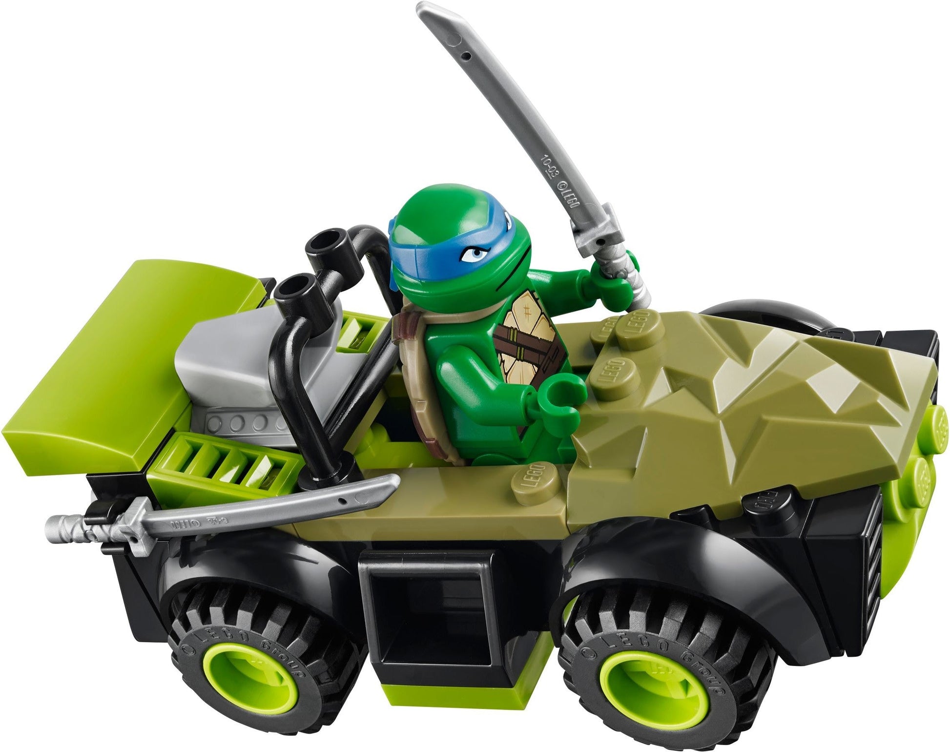 Look out! The evil Foot Ninja is speeding towards the Turtle Lair on his hover vehicle, and Leo must stop him! Jump into the speedy turtle vehicle and chase after that bad guy before he reaches the turtles’ base! If he trespasses, send him running away with the launcher! This cool Turtle-themed LEGO Juniors set with Easy to Build models and age-appropriate building instructions is the perfect start to your young Turtle fan’s LEGO® brick-building adventures.