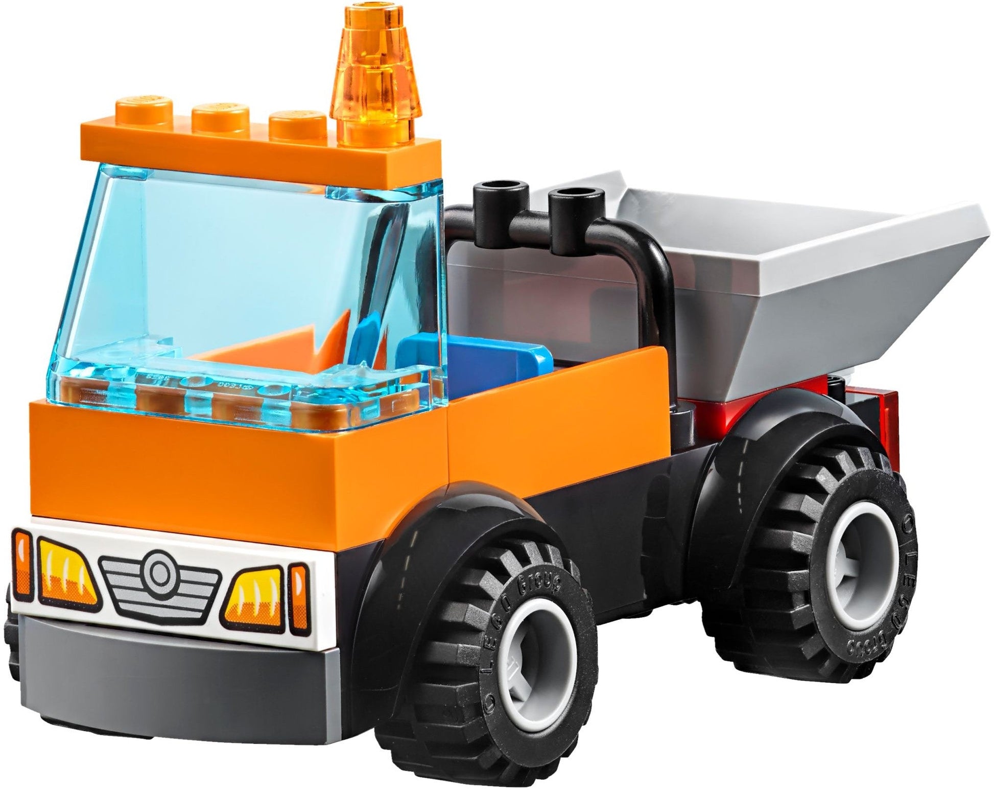 Join the LEGO® City roadwork crew and take care of the streets! This fun toy for boys and girls features an Easy to Build Road Repair Truck with Quick Start chassis, minifigure cab, and an open back for tools, plus a trailer with ramp and a spinning cement mixer. This fun set also includes a simple guide to build and play, with bigger starter pieces to help build confidence in younger children. Includes a minifigure.