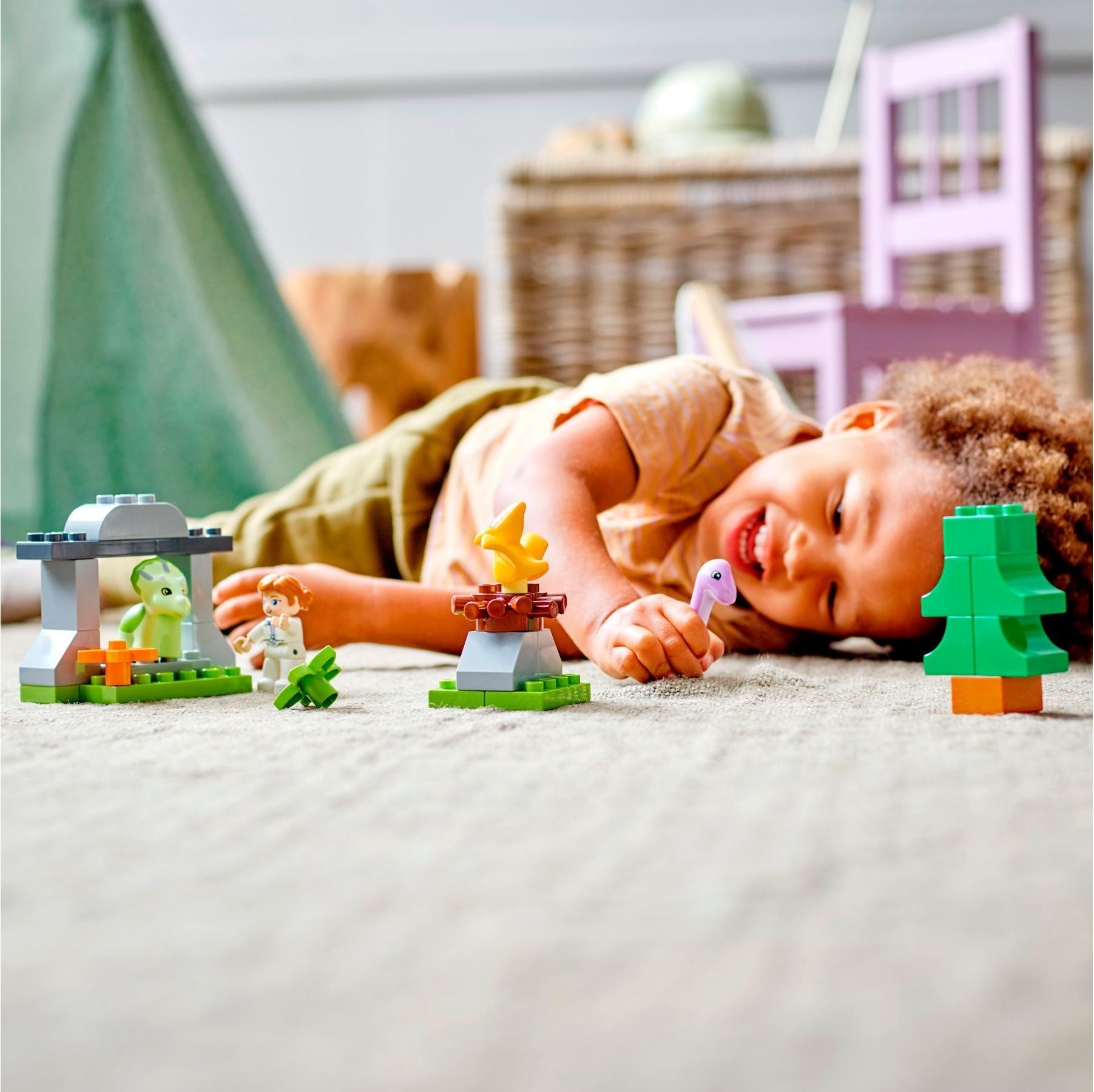 Cute baby dinosaur playsetAnimal-loving toddlers can join Jurassic World’s Claire Dearing to care for 3 baby dinosaurs. There’s a Triceratops in a cave, a Pteranodon in a nest, and a Brachiosaurus using its long neck to nibble leaves from a tree. As your little learner plays with the adorable dinosaurs in their forest habitats, they’ll also develop their fine motor skills and emotional intelligence.