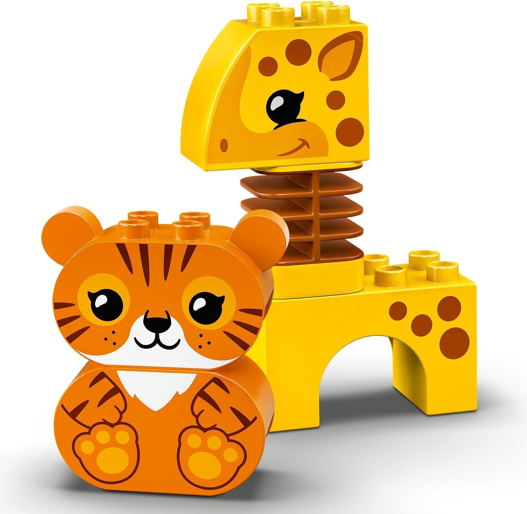 Pull-along animal parade toyThere’s lots for little animal lovers to do with the elephant, tiger, giraffe, and panda. As they build and rebuild, line up the carriages, place animals on and off the train, and stack them on top of each other, they develop fine motor skills and explore a magical world of imaginative role play. Innovative features, like the giraffe’s wobbling neck, add extra joy to this playful learning toy. Building cards, with life-size images of the models, let kids position the bricks over the image as they build. For even more fun, kids can connect the train to other wheel-based DUPLO toys.